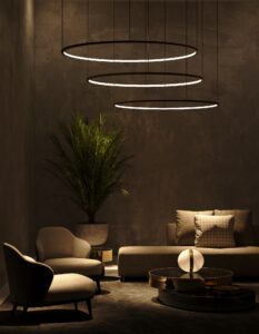 BEAM IN AND OUT CAPO Collection has both STANDARD AND SPECIFICATION GRADE and all fixtures are designed to direct the BEAM IN or the BEAM OUT or the BEAM IN AND OUT from the fixture housing. For further clarification the beam illuminates from the inside of the circle or outside of the circle or from both the inside and outside of the fixture housing. The CAPO Collection comprises a large variety of fixtures and shapes with a plethora of standard and specification options. A Collection with a wide range of finishes in both standard and custom RAL powder coat , wood, metal plating and galvanic finishes. Standard as well as Custom lumen, dimming, and lighting control sensors. Single fixture and multiple fixture combinations as well as multiple fixture chandeliers in both vertical and horizontal configurations.