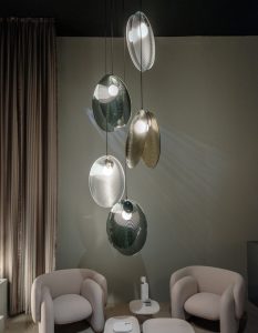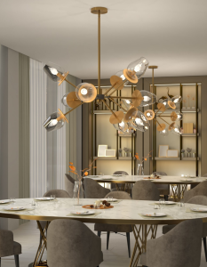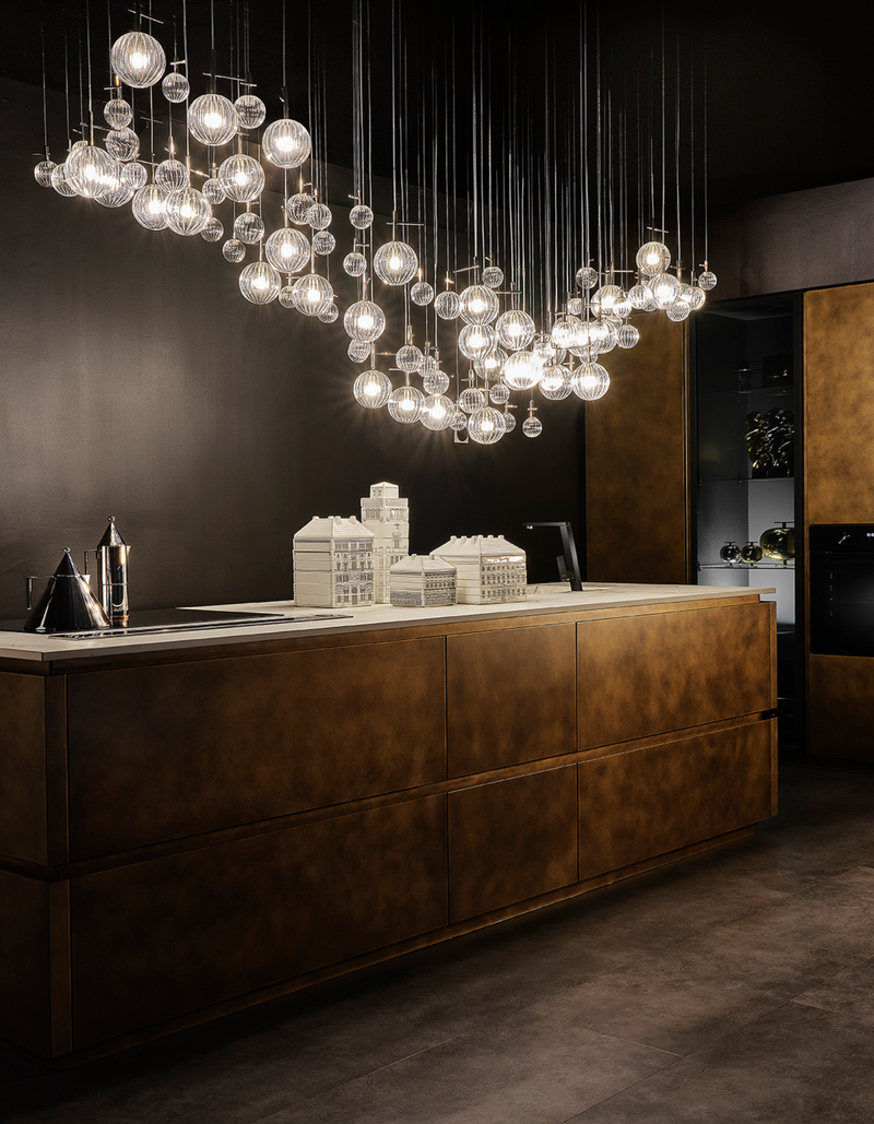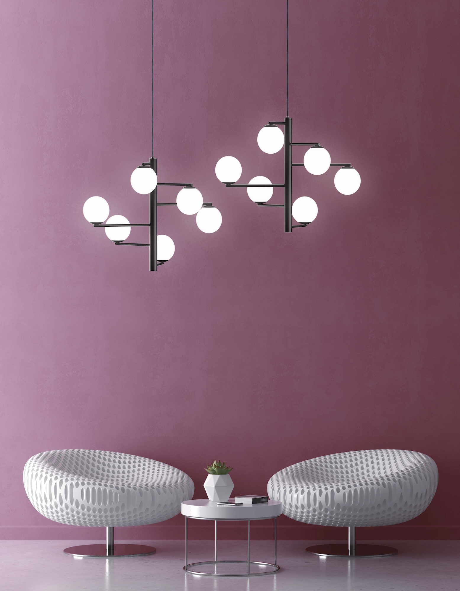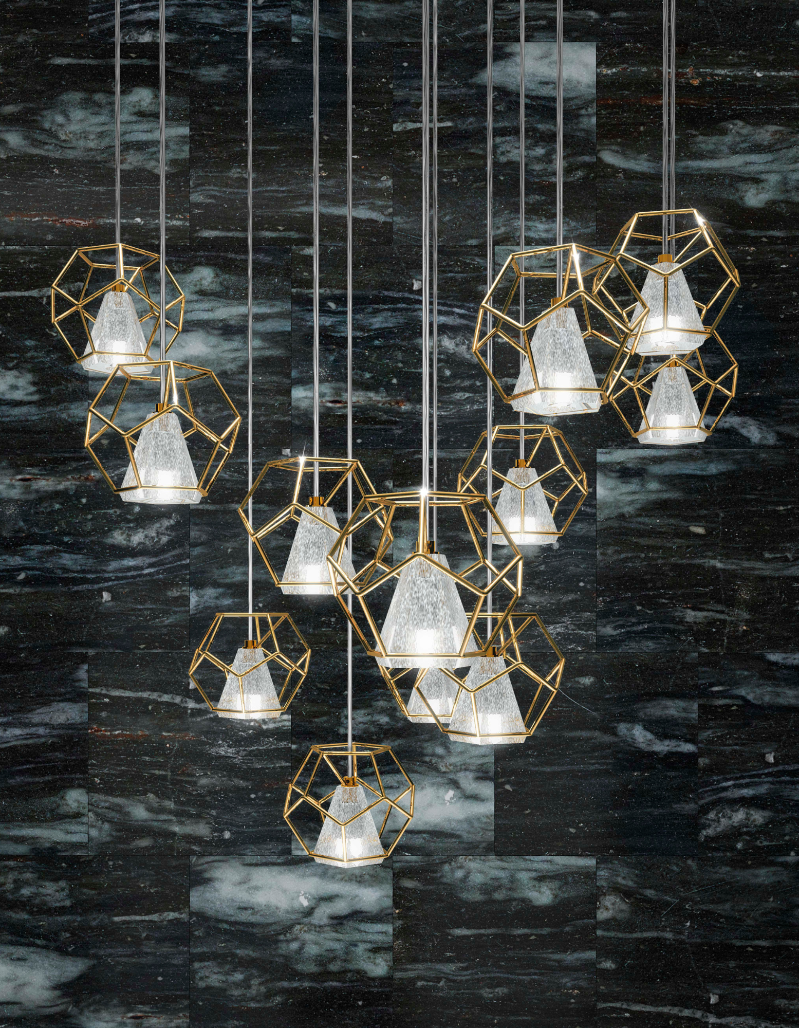 The CHANDELIERS COLLECTION encompasses chandeliers (both suspended and mounted) as well as wall fixtures constructed from glass and metal. A diverse array of sizes, designs, and finishes are on offer, ranging from Satin Gold to Silver Leaf, and from classic Black to sophisticated Antique Brass. Several models, such as Medusa or Incanto, emit a stunning bouquet of light. These fixtures utilize E12 and G9 light sources.
