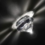 Alcor recessed spotlight (IP 44) with hand-ground lead crystal diffuser and with chromed aluminum flange.