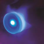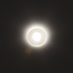 Auge is a minimal spotlight featuring a thick glass ring as decoration.