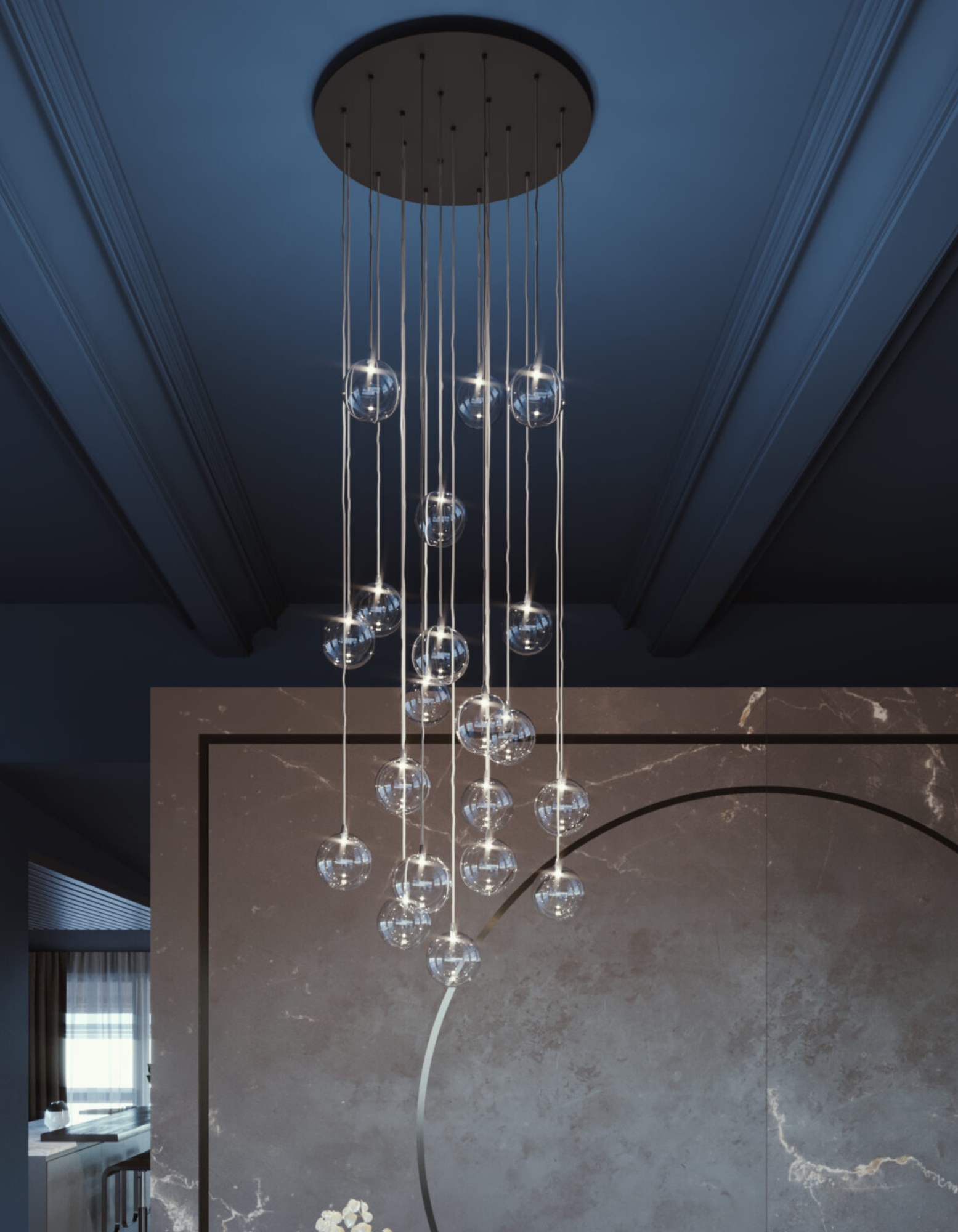 The Ballroom Collection by Cerchio Lighting exudes timeless elegance through its meticulously crafted hand-blown glass spheres, available in exquisite finishes.