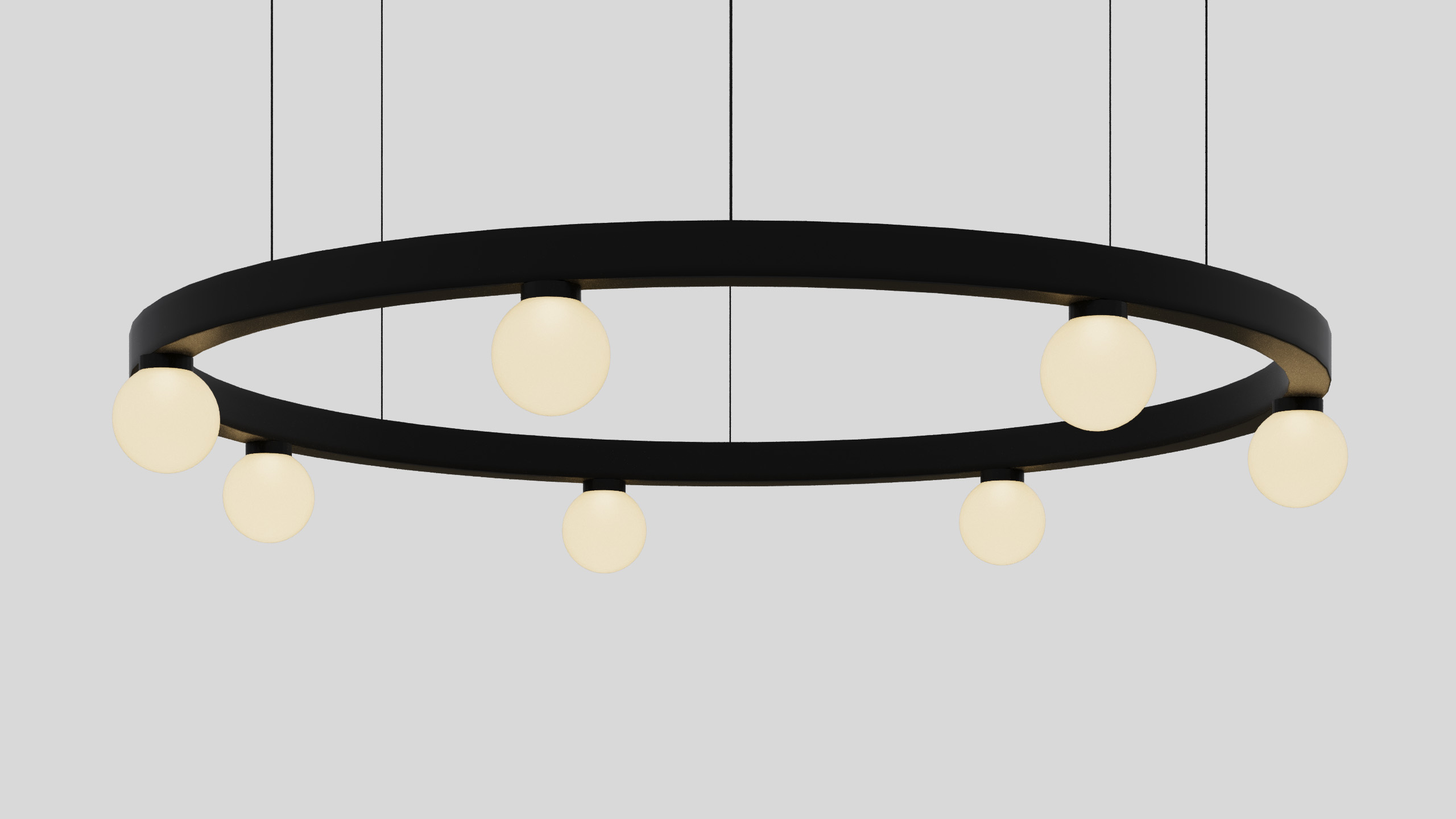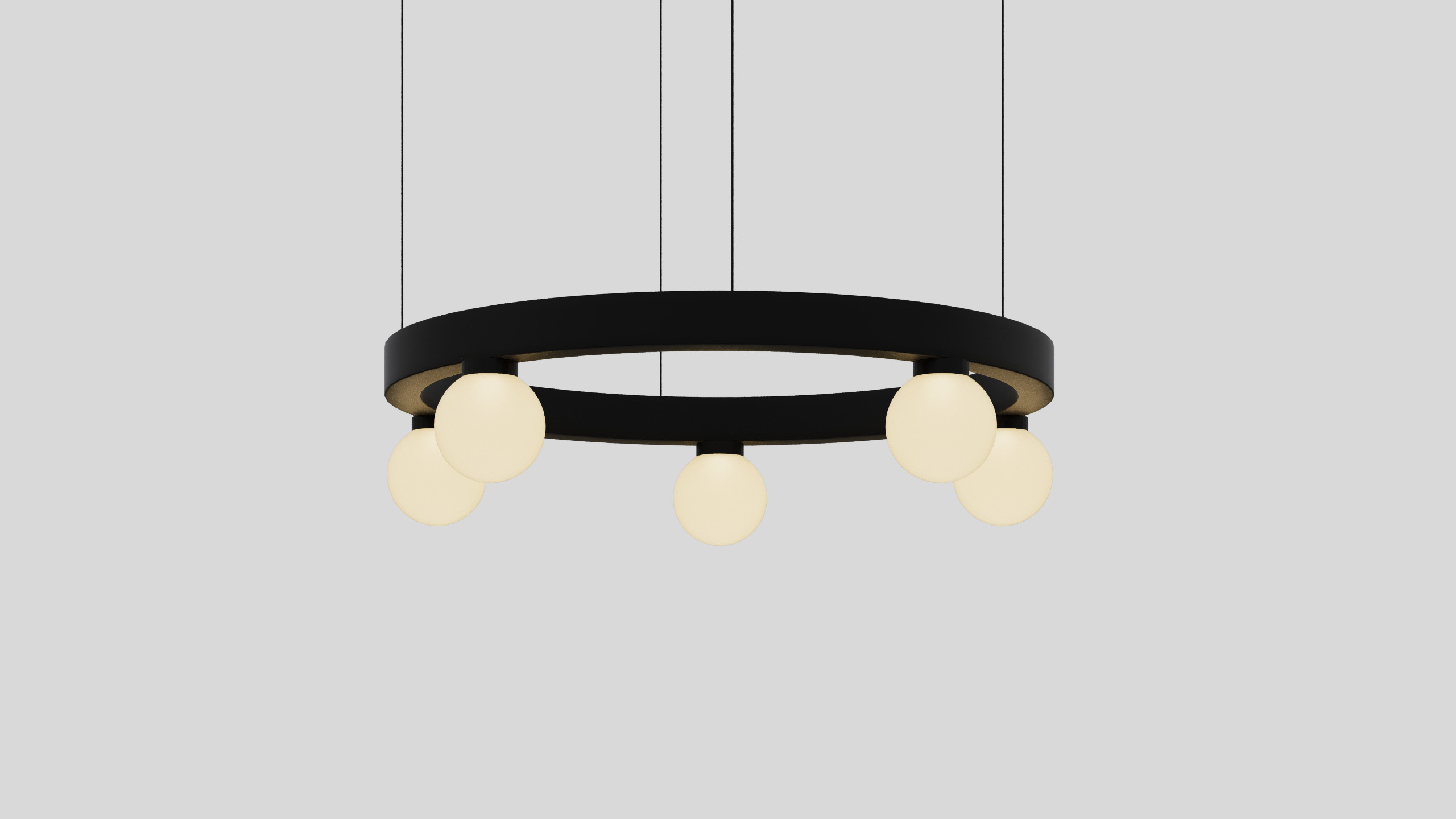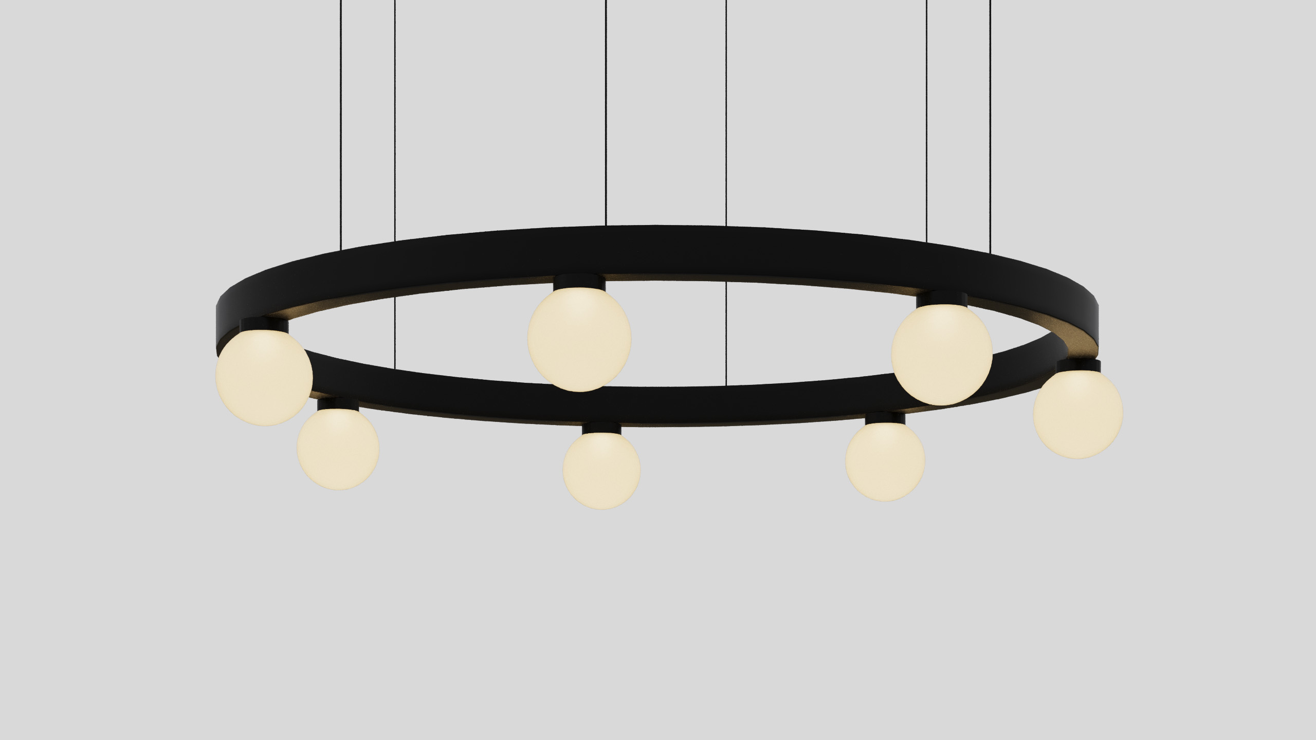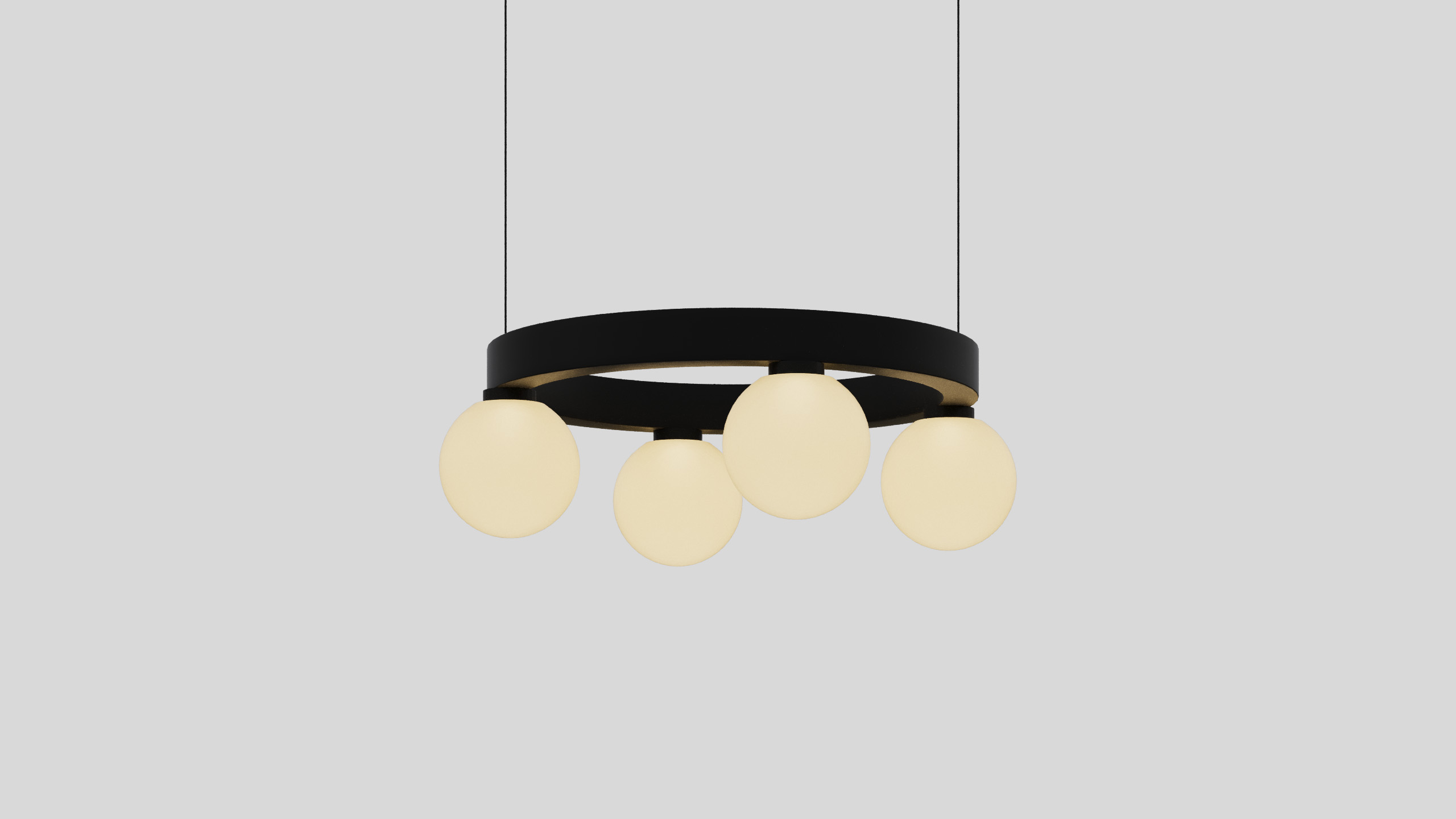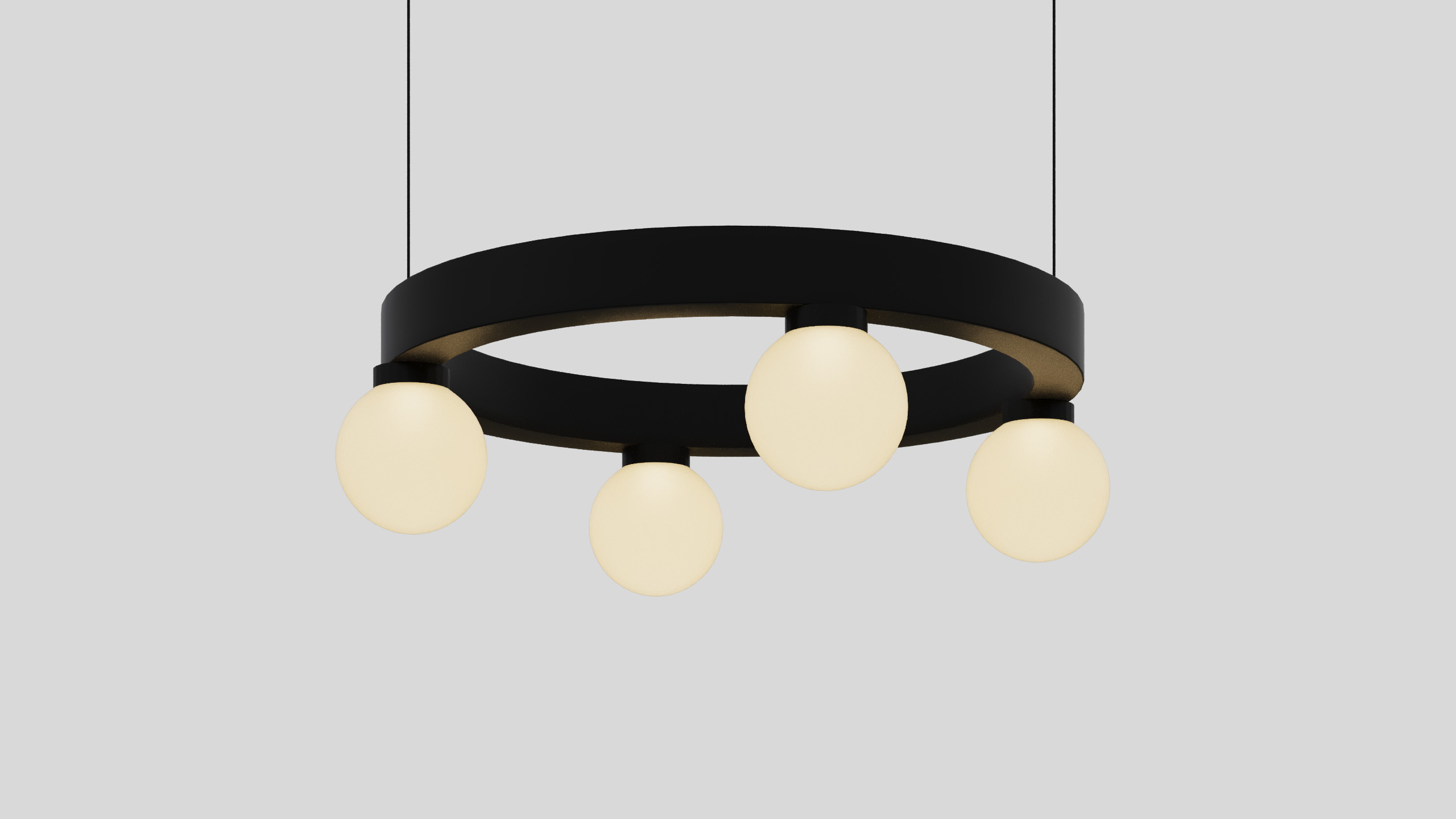 BALLZZZ ONE is a circle pendant with spherical lamp elements. It works perfectly both ways: as a single light fixture and as a composition of differently sized “Ballzzz”.