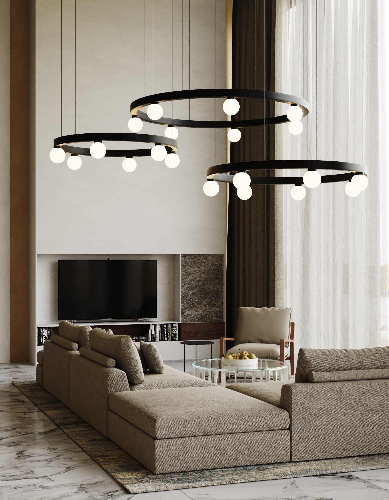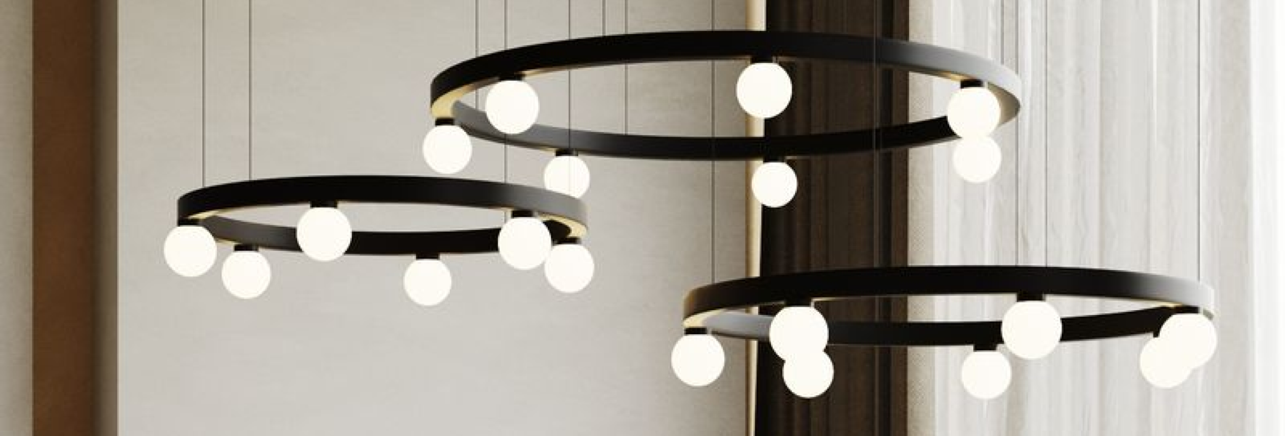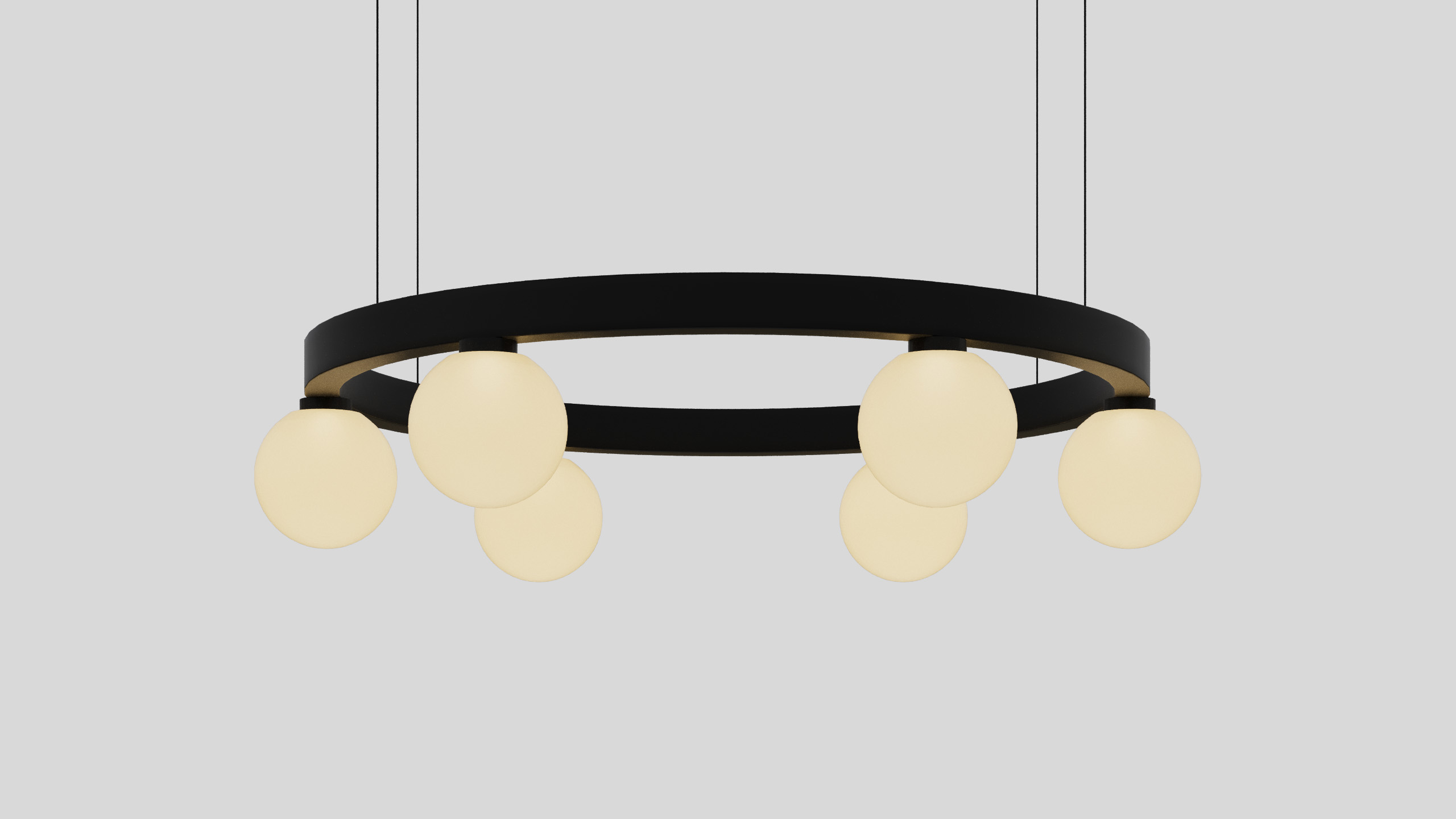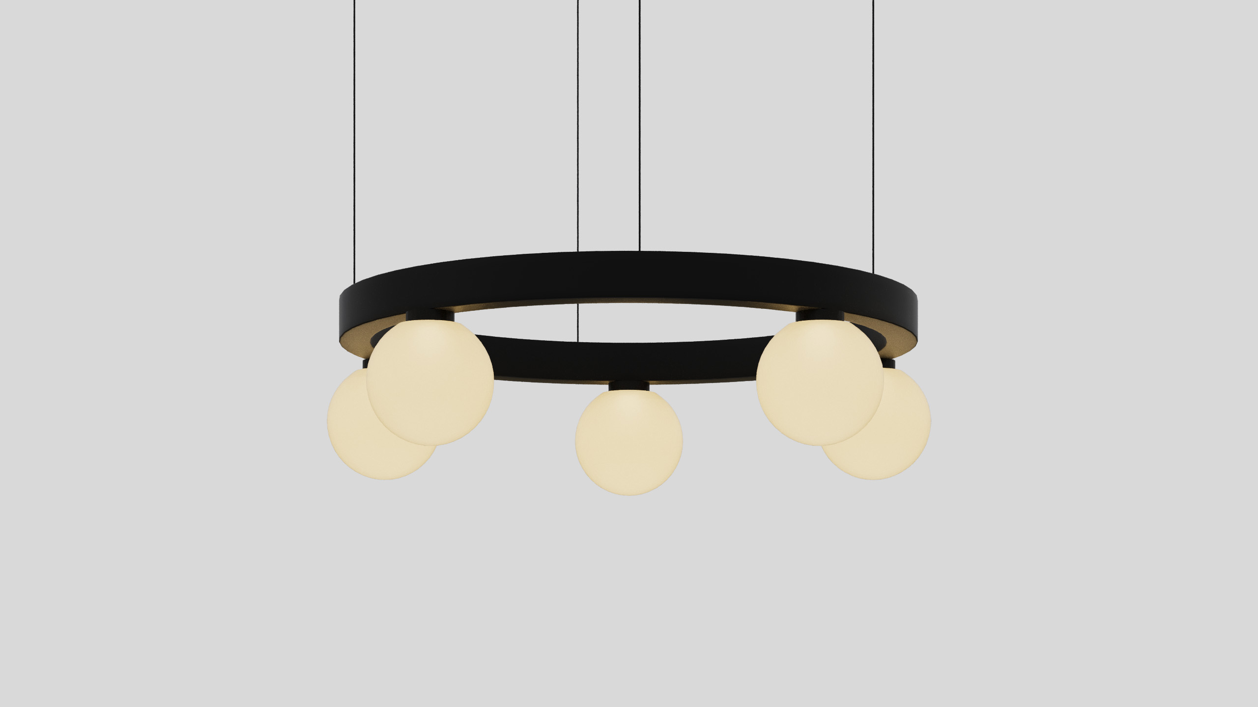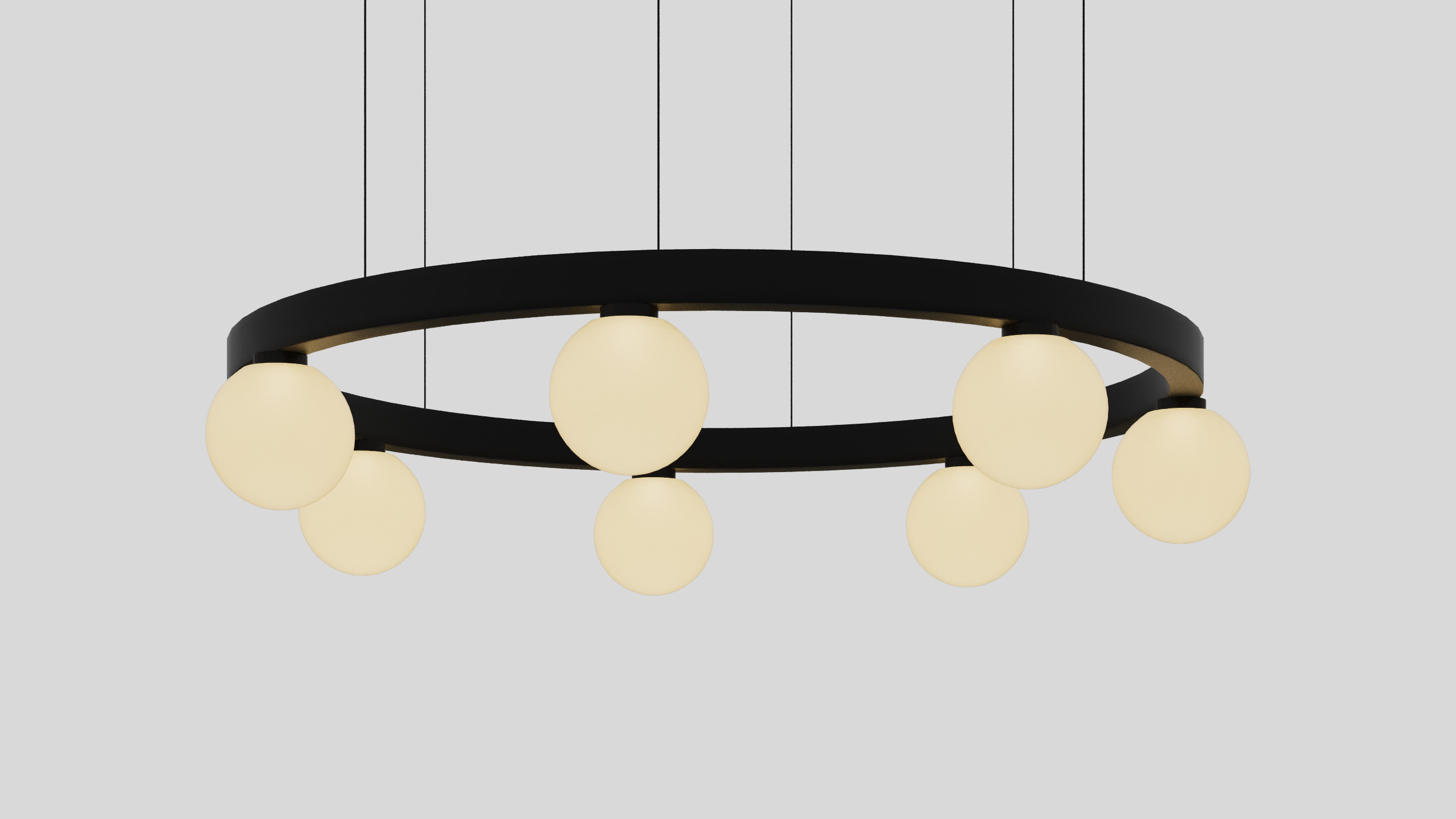 BALLZZZ ONE is a circle pendant with spherical lamp elements. It works perfectly both ways: as a single light fixture and as a composition of differently sized “Ballzzz”.