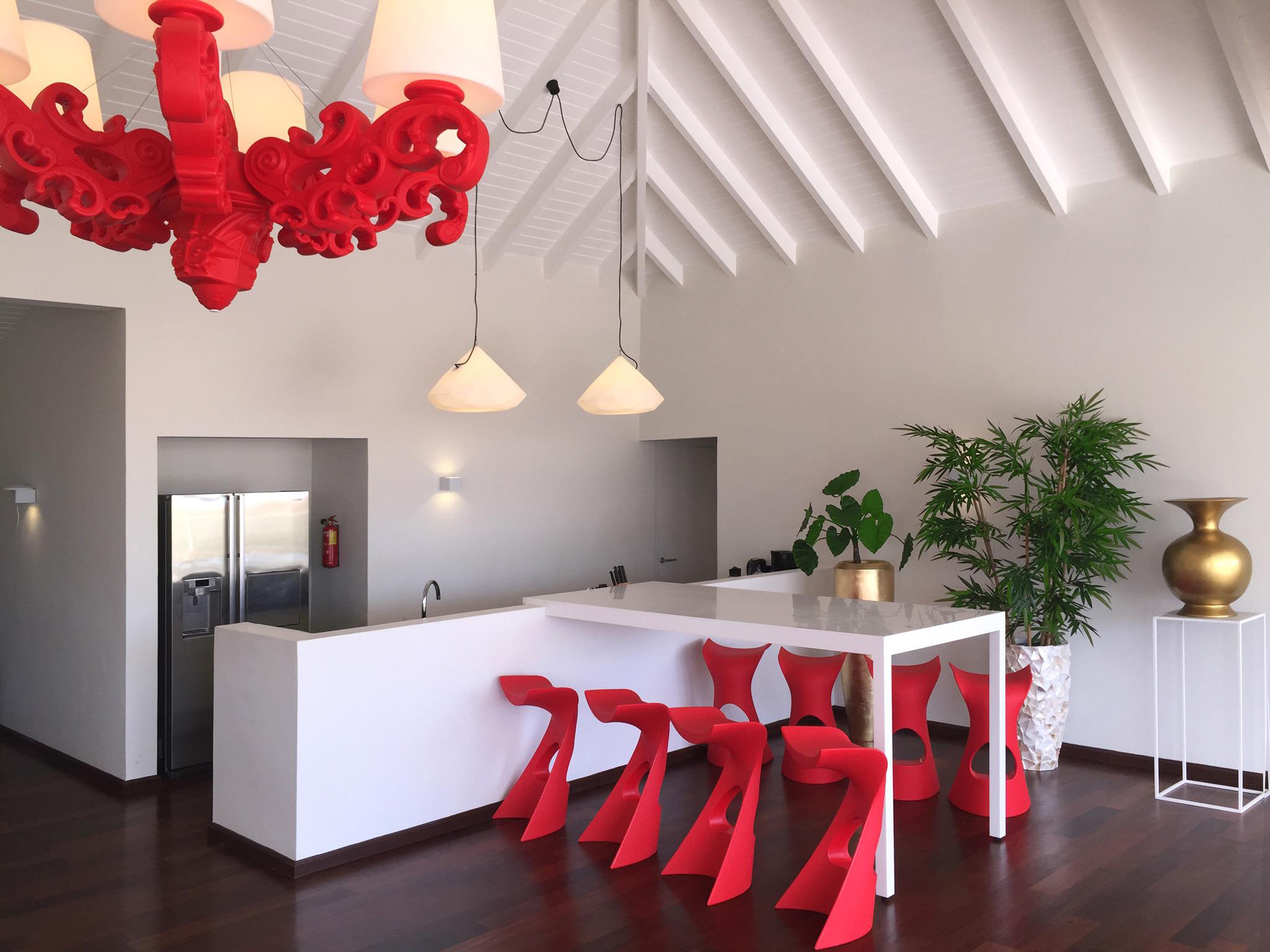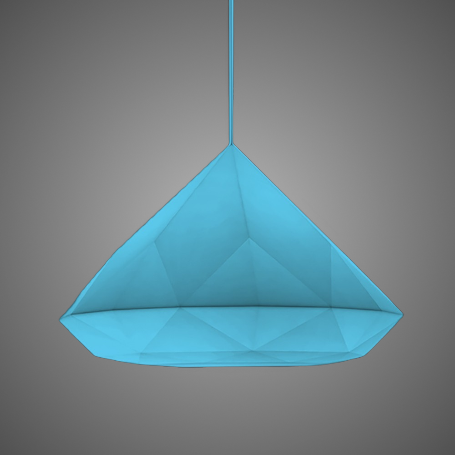 “Bijoux is an hanging lamp made in polyethylene that reminds of the shape of a diamond: when it is on, its dim light turns Bijoux into a real diamond, and it is able to make richer indoor and outdoor settings of private and