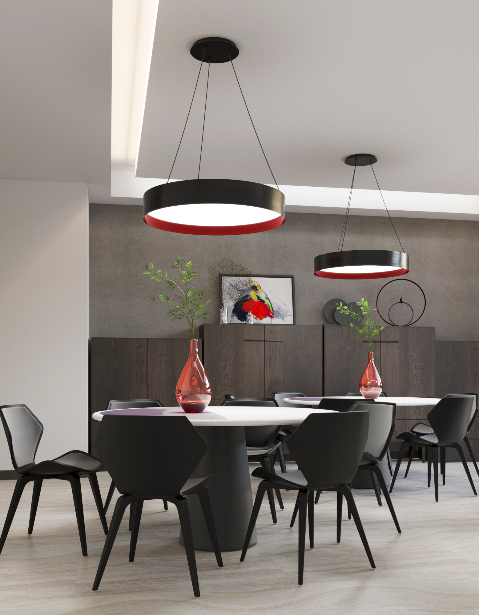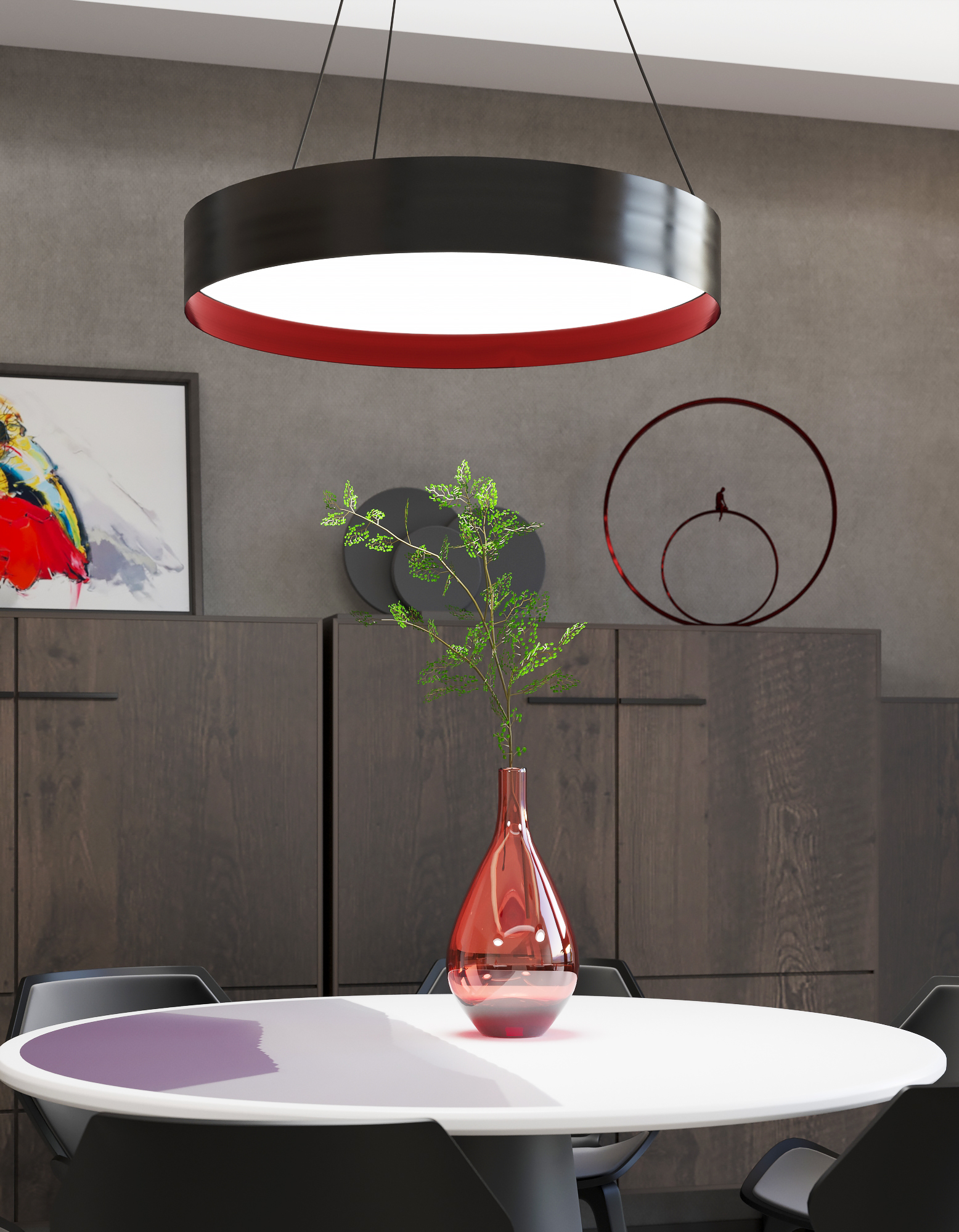 Combining the elements of color, shape, light, and sound, the rainbow family is an extremely versatile lighting tool for a range of projects. Available in three sizes: 23,6″, 35,4″, 47,2″., a beveled regress from the outer profile reveals an evenly illuminated satin lens or sound-absorbing felt in a range of color options. Choose from direct, indirect, or direct indirect light, plus different colors for the inside bevel and outside frame to match the vibe of your application. Add sound-absorbing felt in place of lighting on the direct side for warmth, texture, and increased acoustical comfort. Combine lit and unlit with acoustic options in various sizes to create a coordinated design aesthetic.