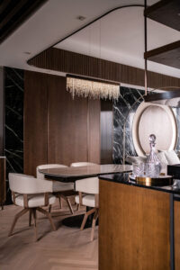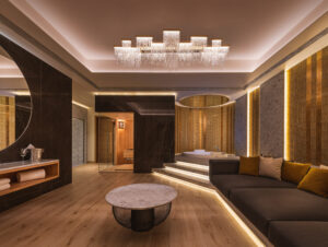 Equipped with integrated dimmable LED lighting, the collection provides both ambient and functional illumination, making it a versatile choice for interiors seeking a touch of sophistication and contemporary charm.