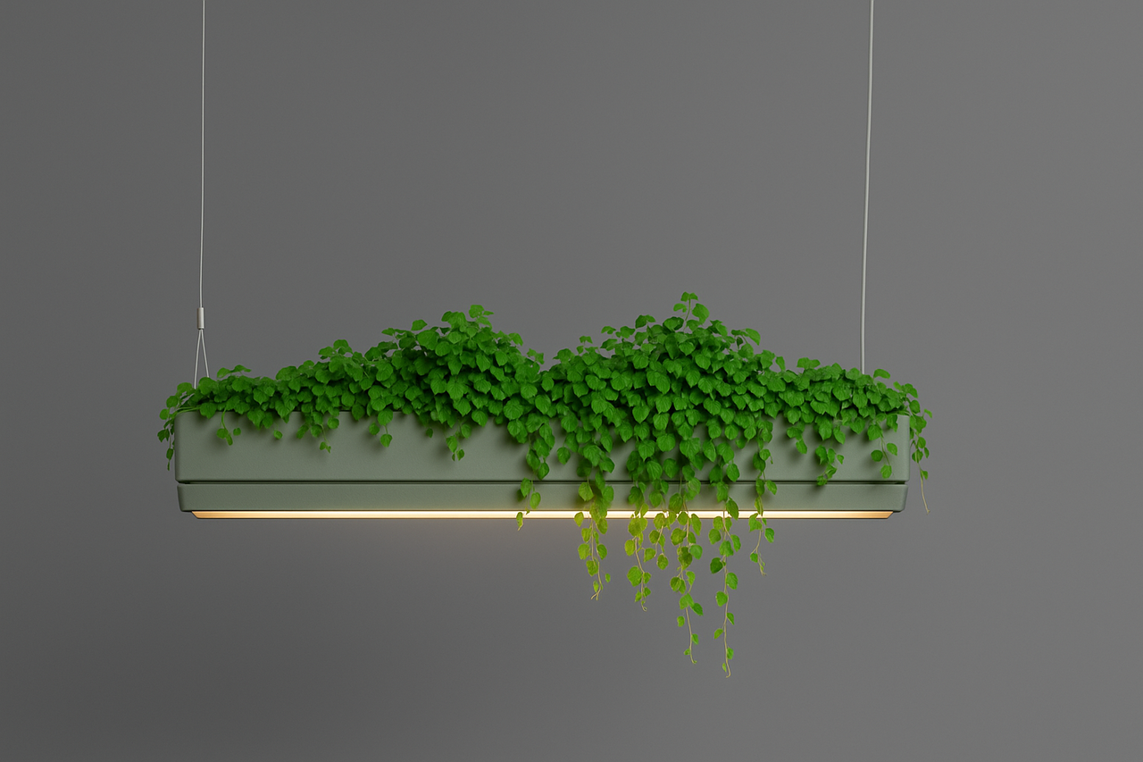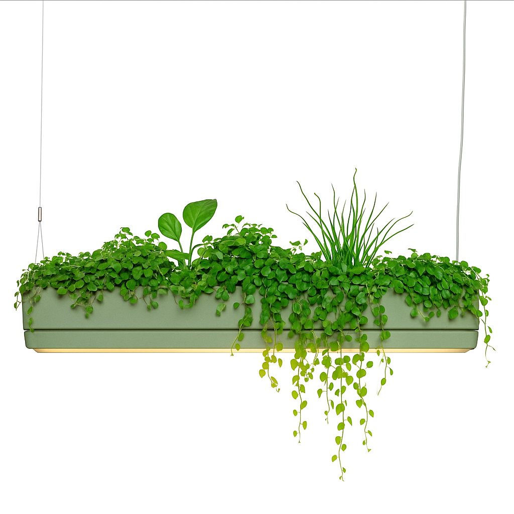 Finished in refined Olive Green (RAL 6003), it delivers a serene, organic aesthetic that enhances any space with soft, ambient light and the calming presence of living foliage.