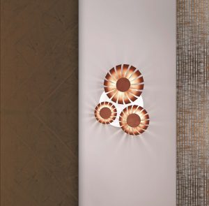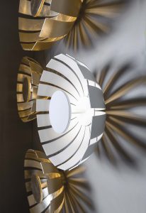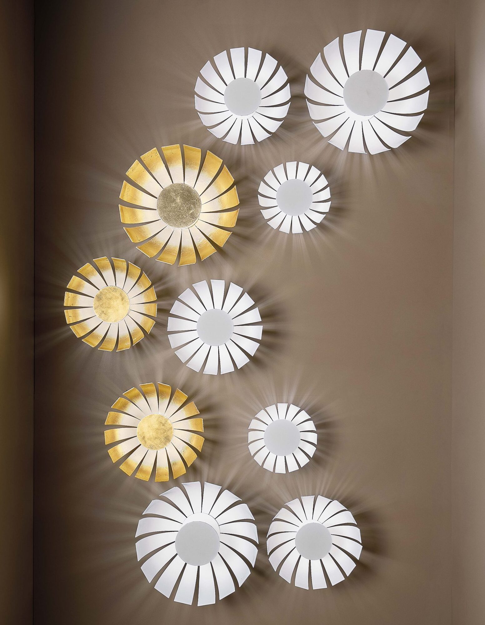 The Loto wall and ceiling lamp is also available in white, anthracite, bronze or in gold leaf, copper leaf, silver sheets and oxidized leaf.