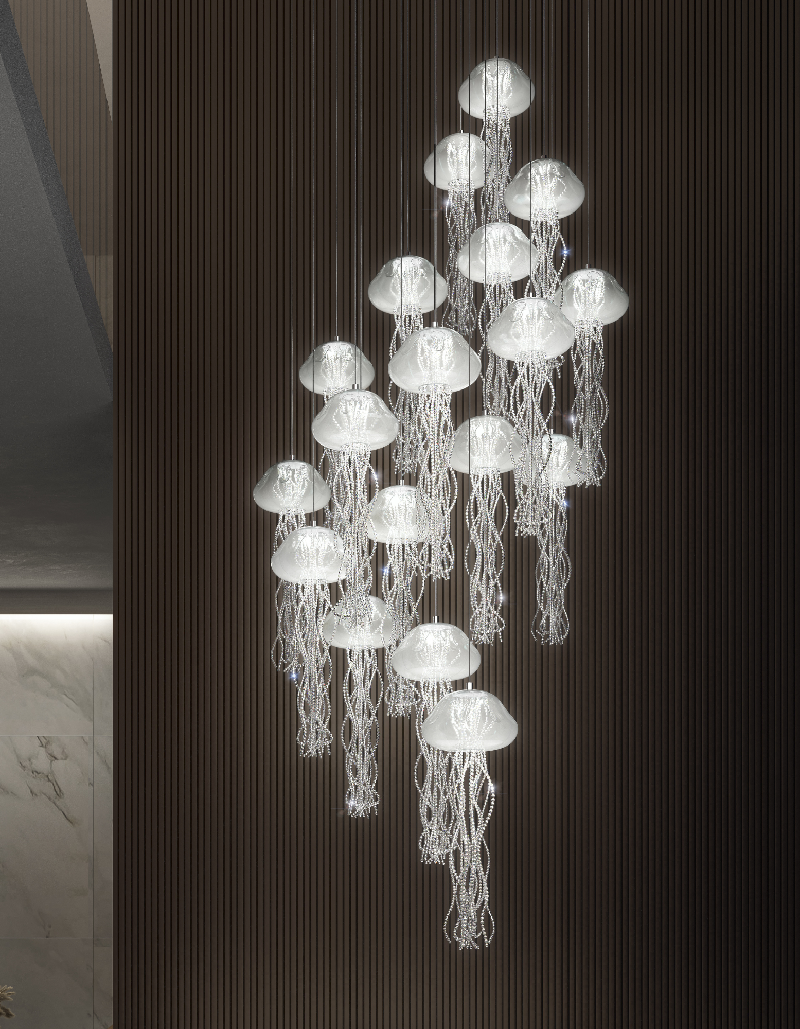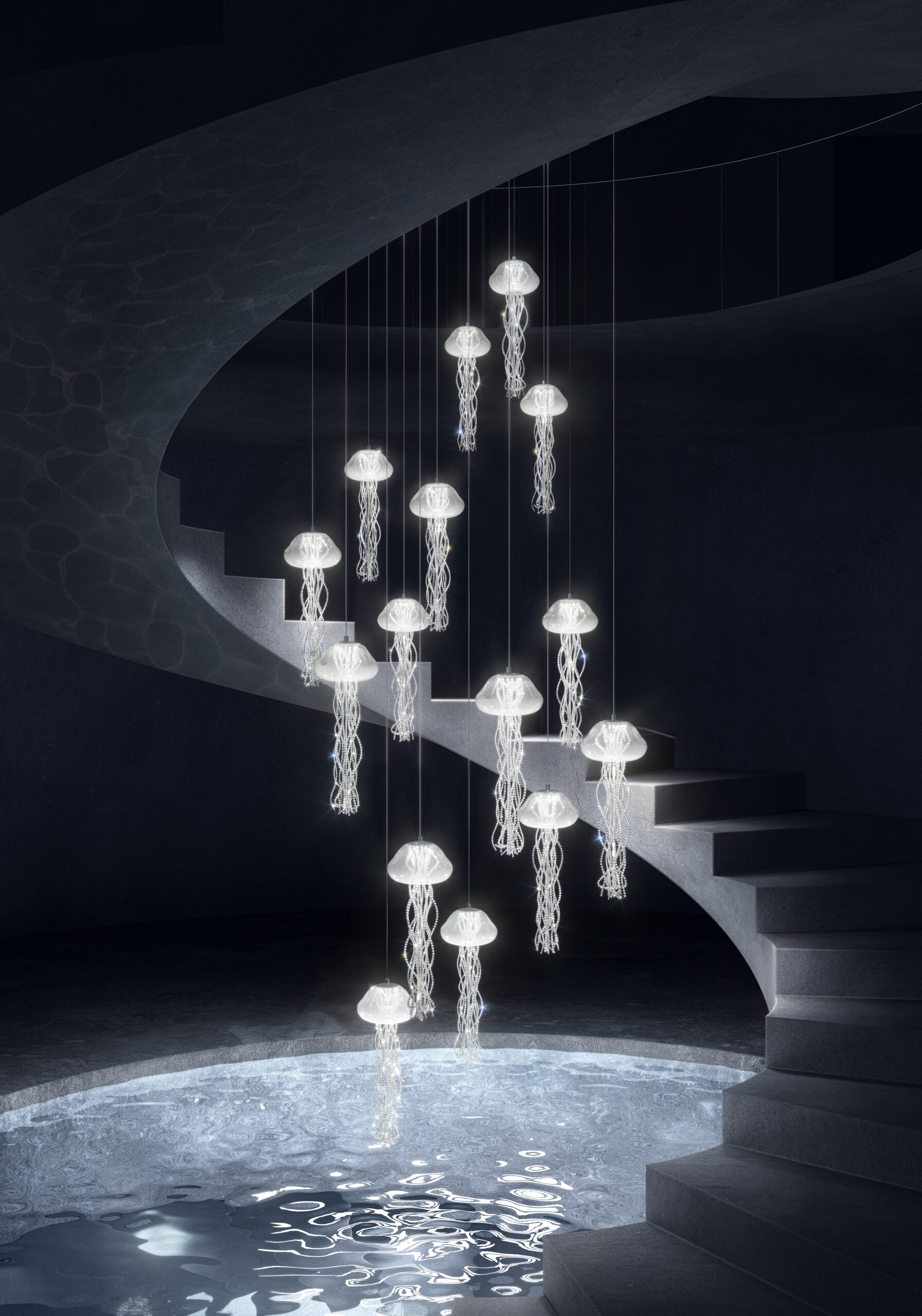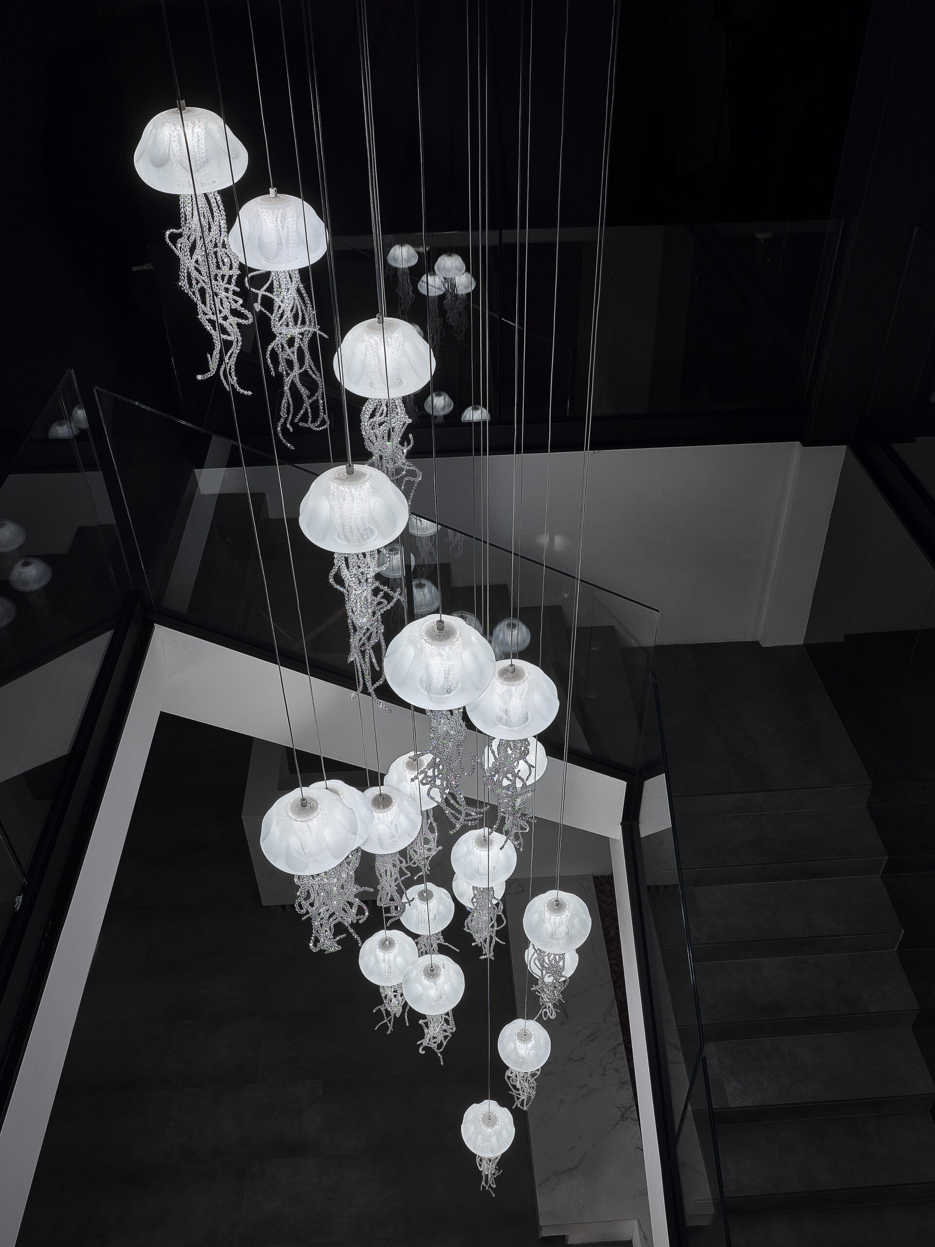 The MEDUSA by Cerchio Lighting is a stunning statement piece that merges contemporary design with artistic flair, inspired by flowing, organic forms.