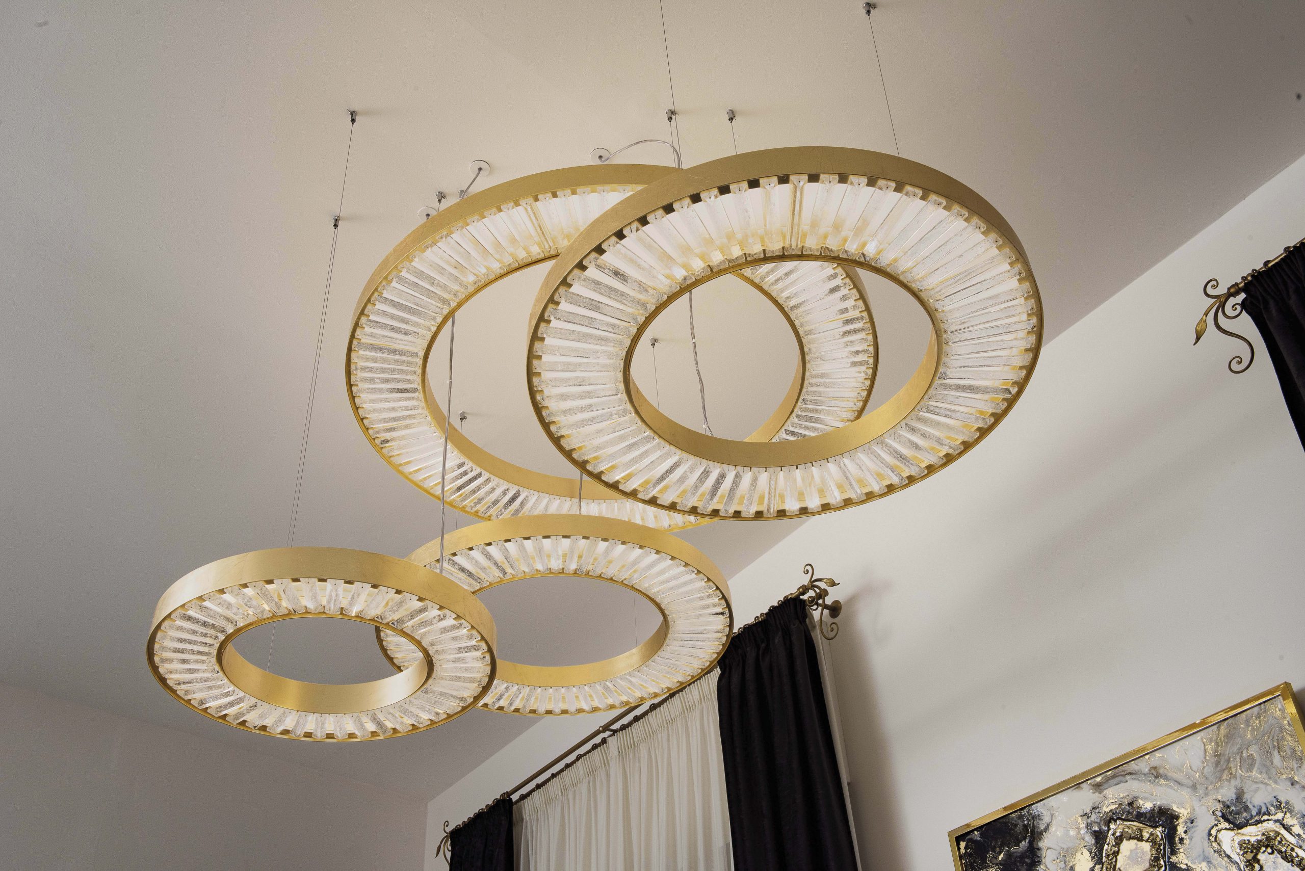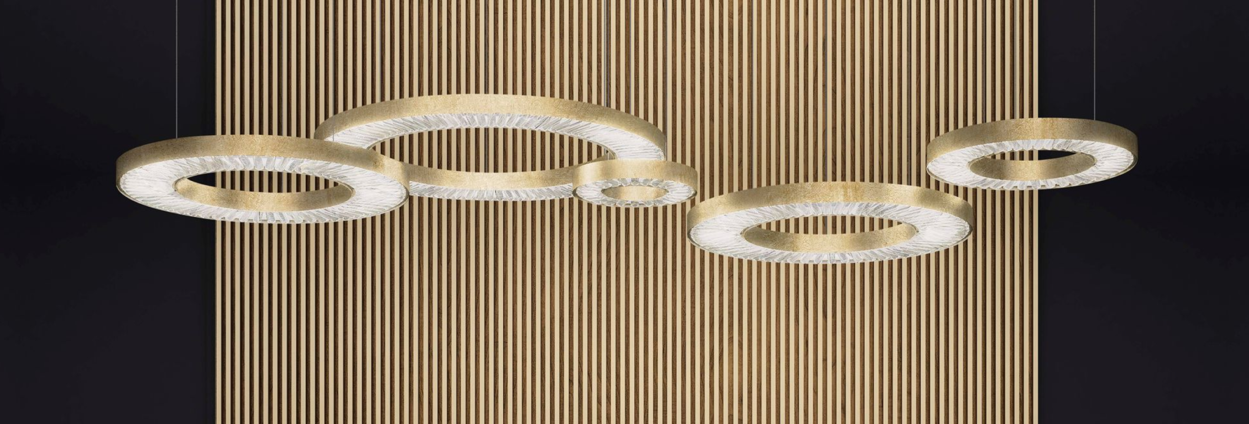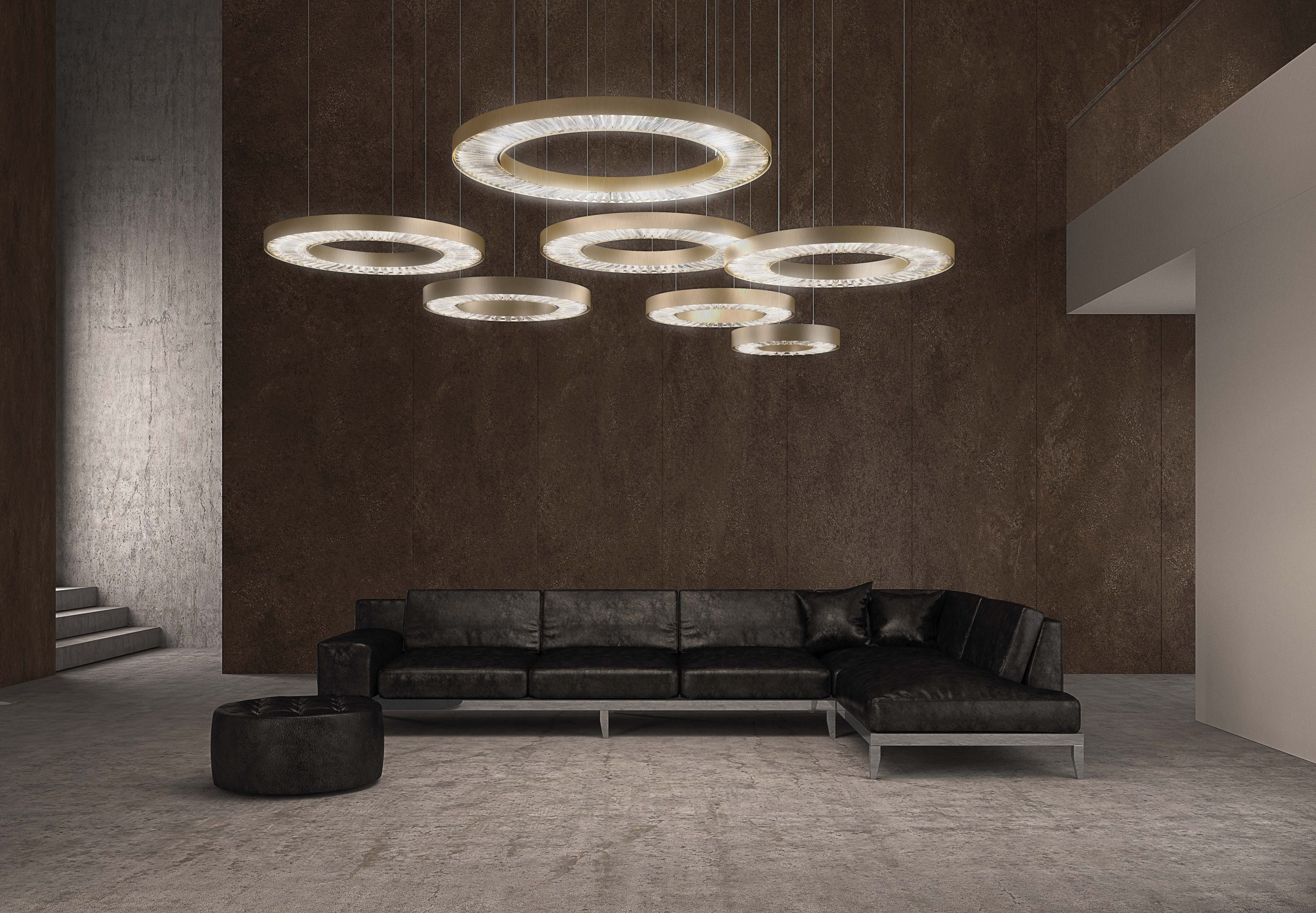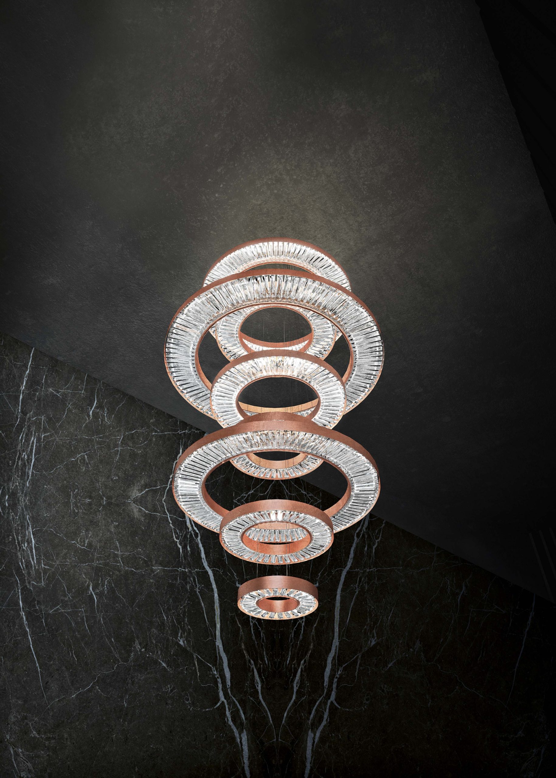 Millennium collection – a mesmerizing blend of transparent crystal circles, LED-illuminated for emotional effects. Craft unlimited compositions with modular rings in crystal lozenges, offering sizes like Ø: 11.81″, Ø: 23.62″, Ø: 11.81″, and Ø: 23.62″.