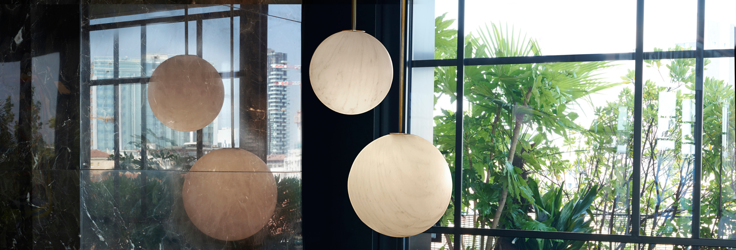 Marble elegance combined with brass finishing creates a Mineral version perfect for indoor spaces.