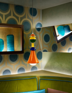 The Otello pendant lamp by Cerchio Lighting is a vibrant and modern lighting solution that brings a touch of retro flair to any interior space.