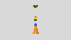 Designed by Giò Colonna Romano, this fixture features a playful combination of geometric shapes and bold colors, reminiscent of 1970s and 1980s design aesthetics.