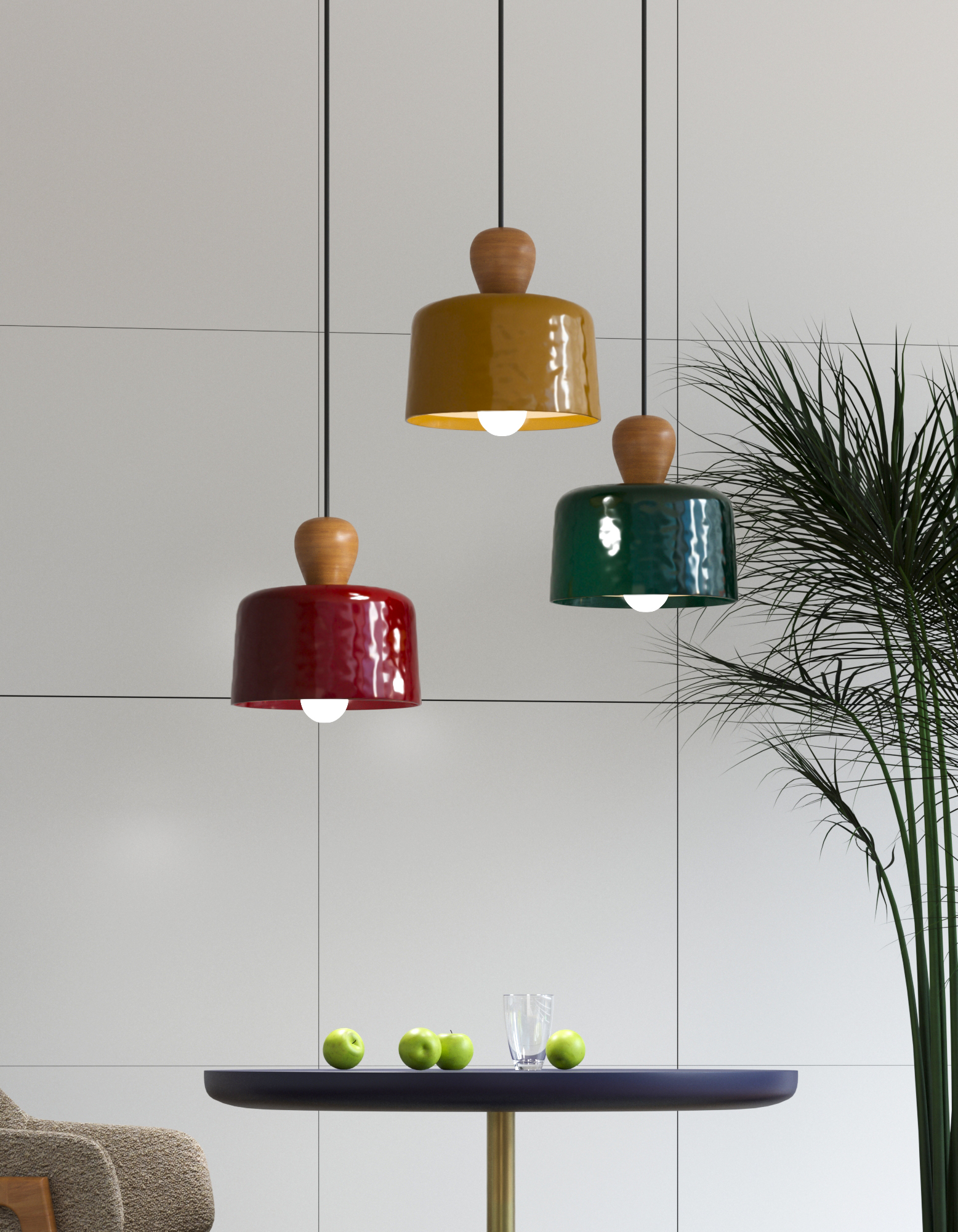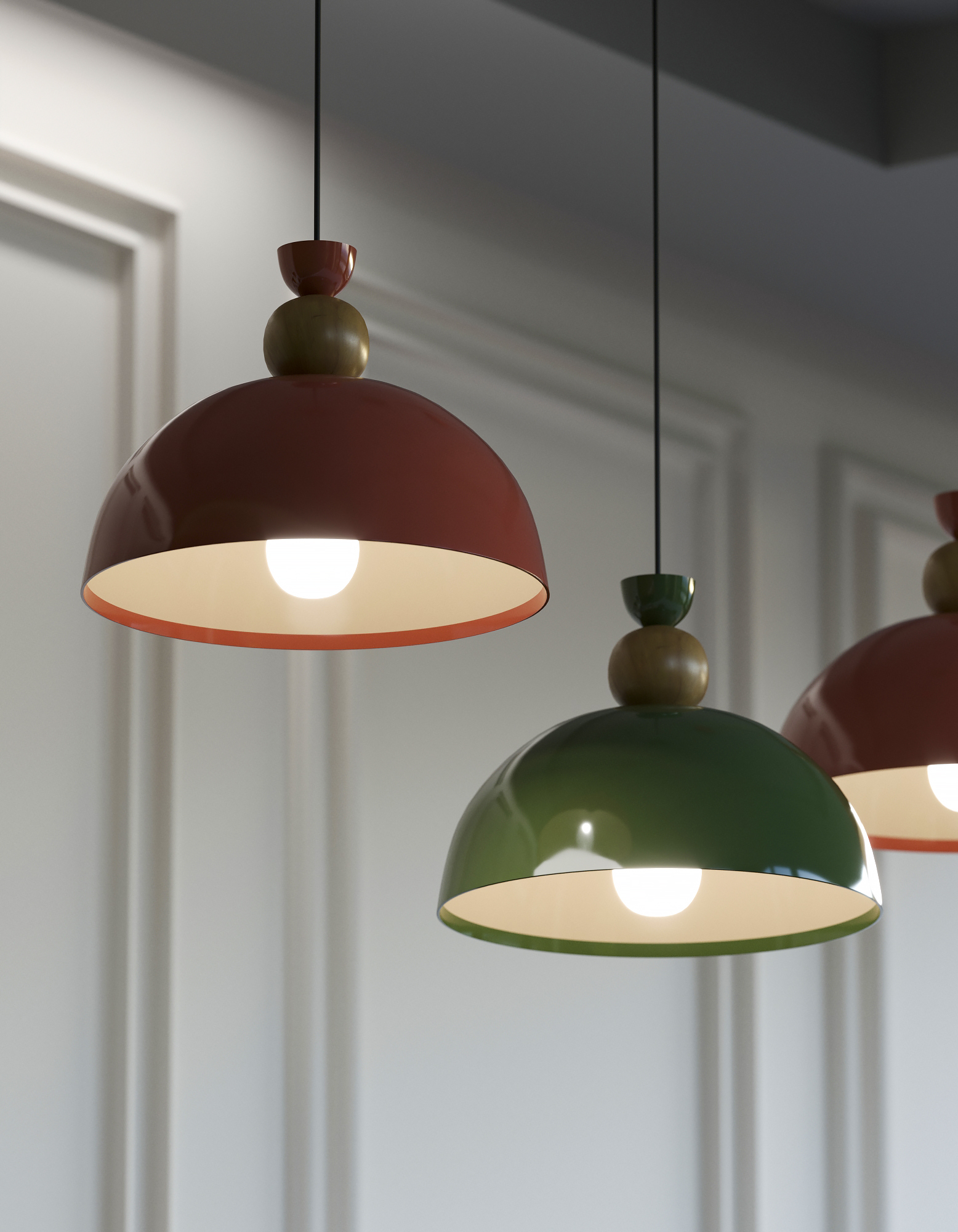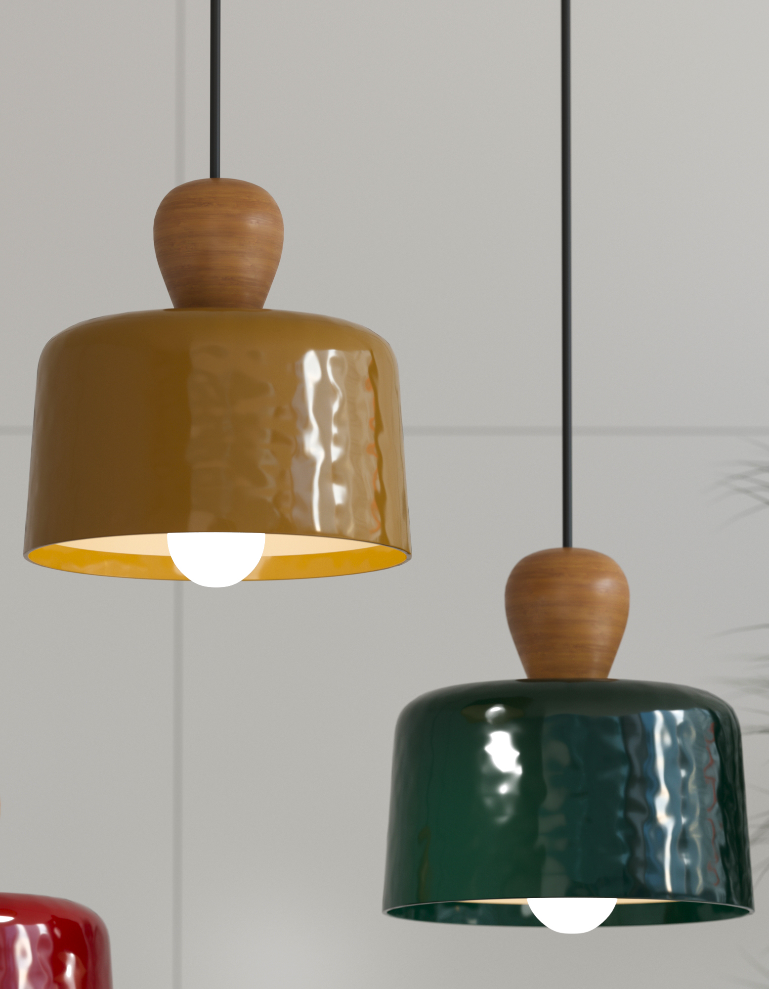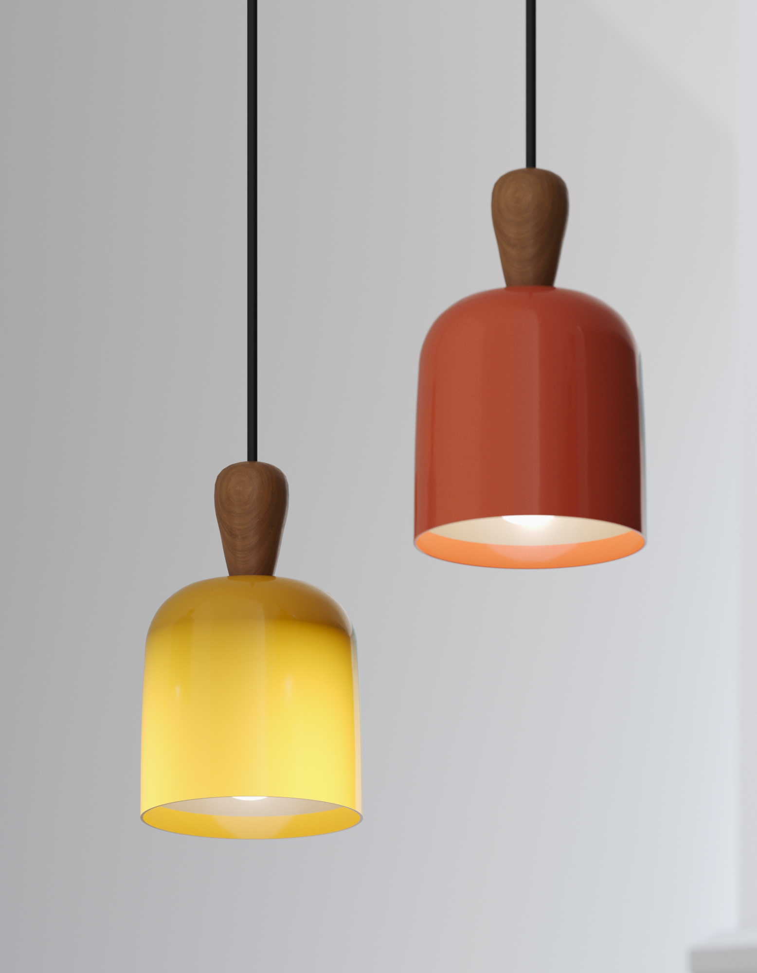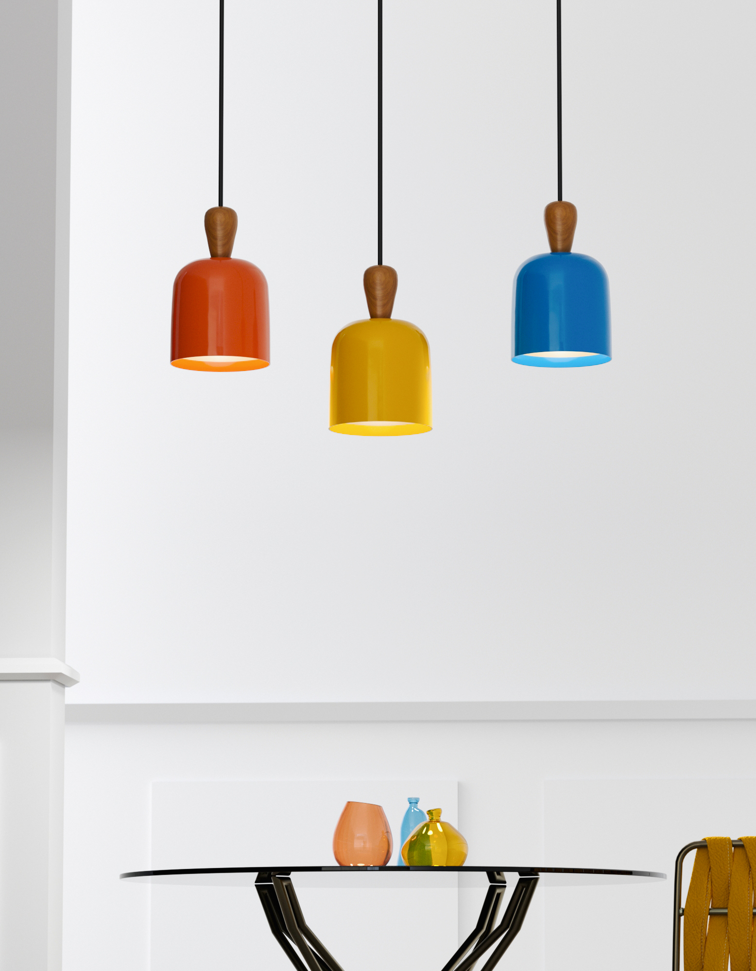 The Rainbow Pendant series is a series of single stalactites produced in 3 different sizes and dozens of different colors, where metal and wood material meet.