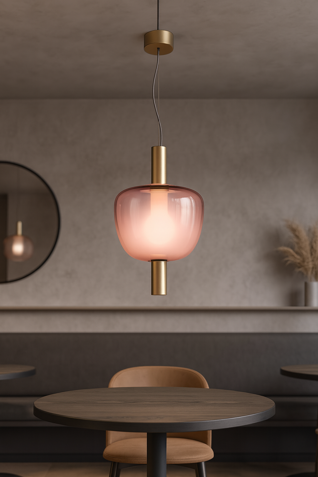 Available in Light Amethyst Transparent and Crystal Transparent glass finishes, and complemented by Matt Gold or Matt Copper frame options, this pendant adapts seamlessly to both modern and classic spaces.