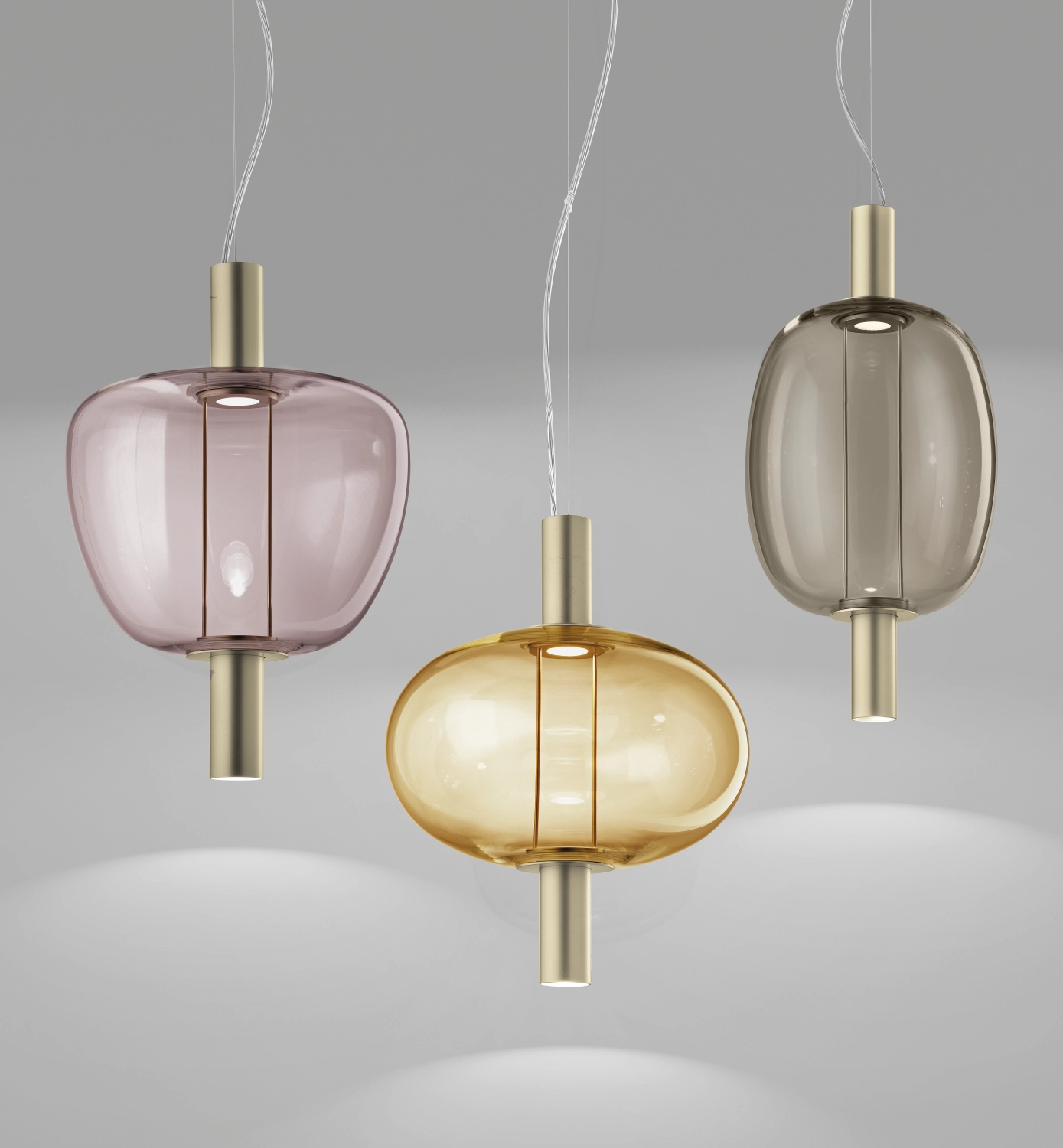 The RIFLESSO pendant is an elegant decorative luminaire that combines handcrafted glass with refined metal accents. Its softly rounded silhouette and glossy finish create a delicate play of reflections, bringing warmth and sophistication to any interior.