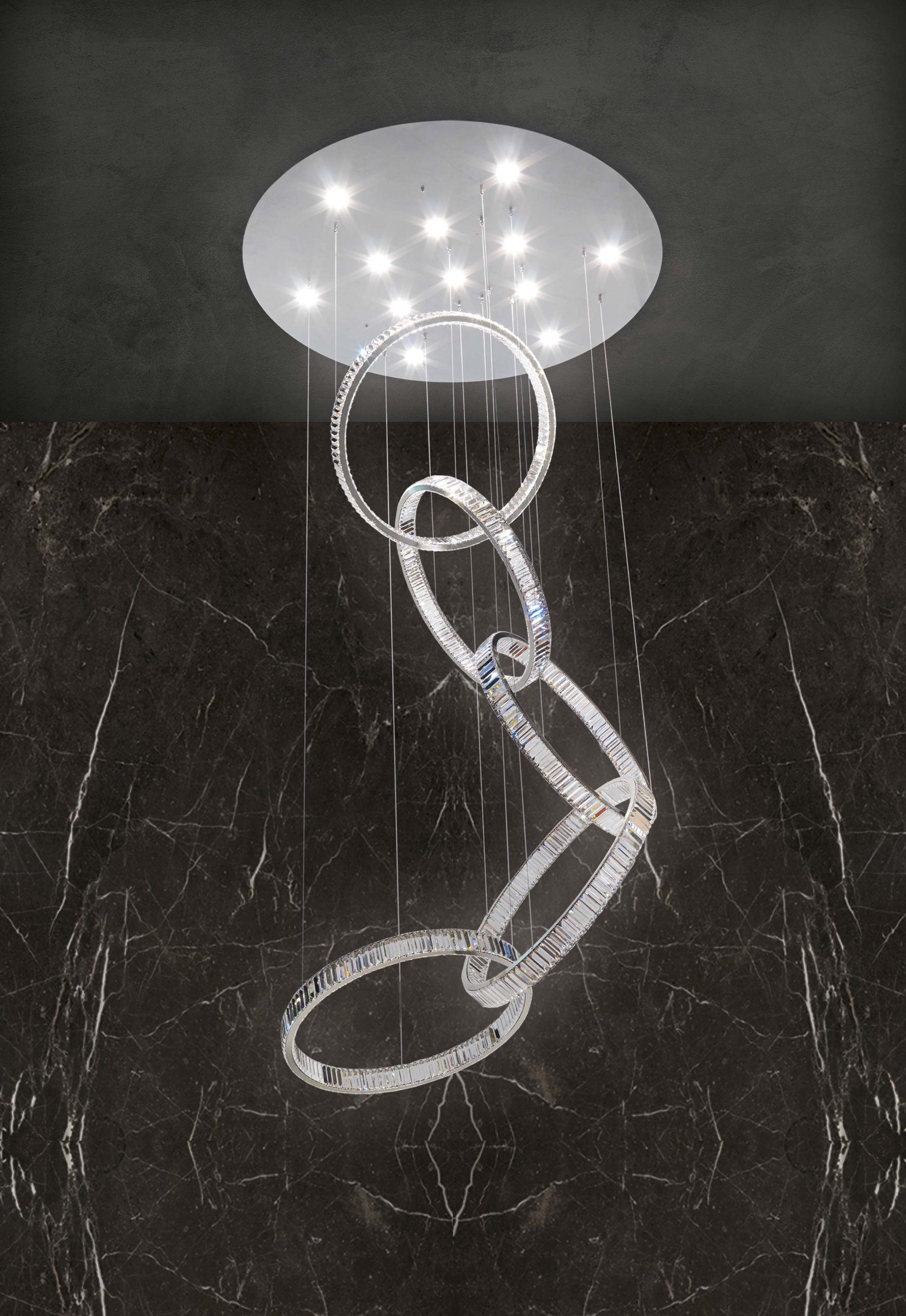 Designed by Coen Munsters, each handcrafted piece combines high-quality metal finishes with sparkling crystals, creating a captivating visual effect.