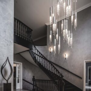 The collection offers a range of fixtures, including pendant lights, wall sconces, ceiling lights, and floor lamps, all customizable in various sizes, finishes, and crystal types to suit individual interior designs.