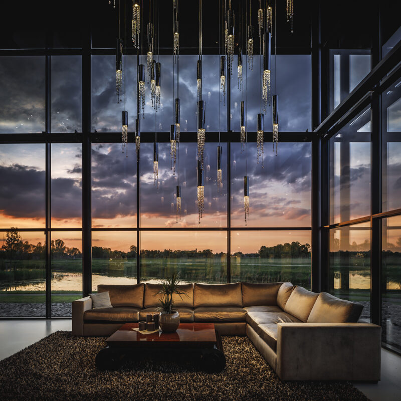 Designed by Coen Munsters, each handcrafted piece combines high-quality metal finishes with sparkling crystals, creating a captivating visual effect.