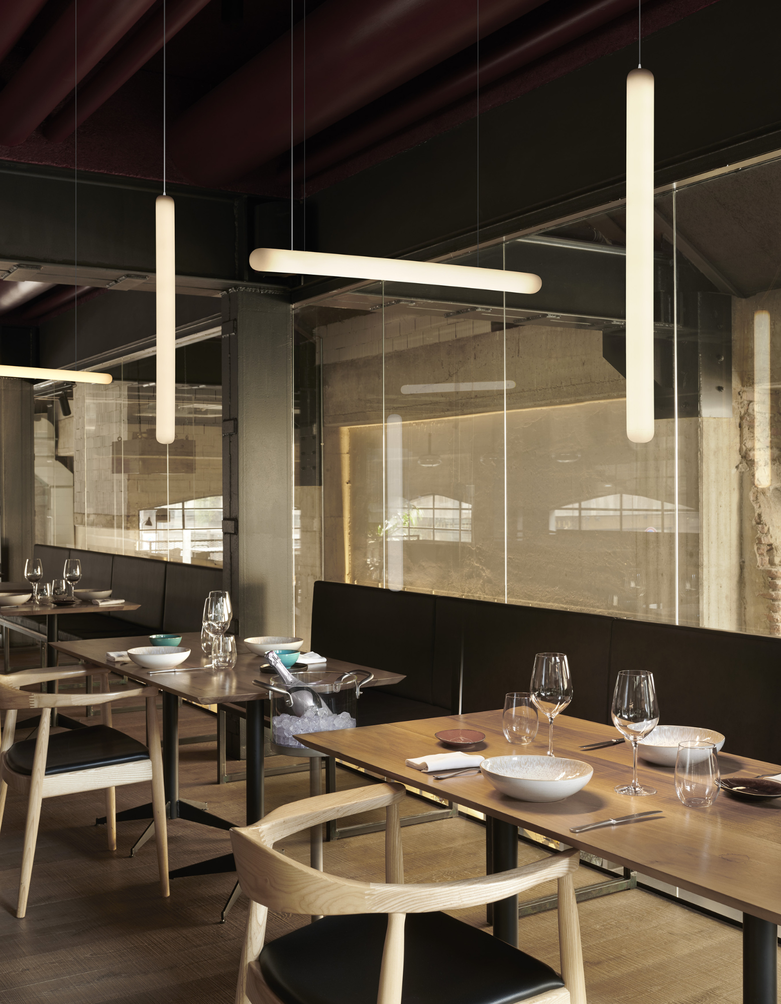 STILETTO the hanging lamp with an essential line, ideal for contemporary and indoor settings that require a scenographic lighting.
