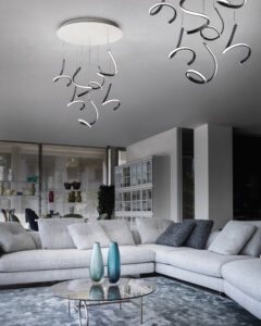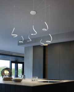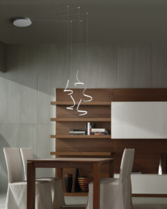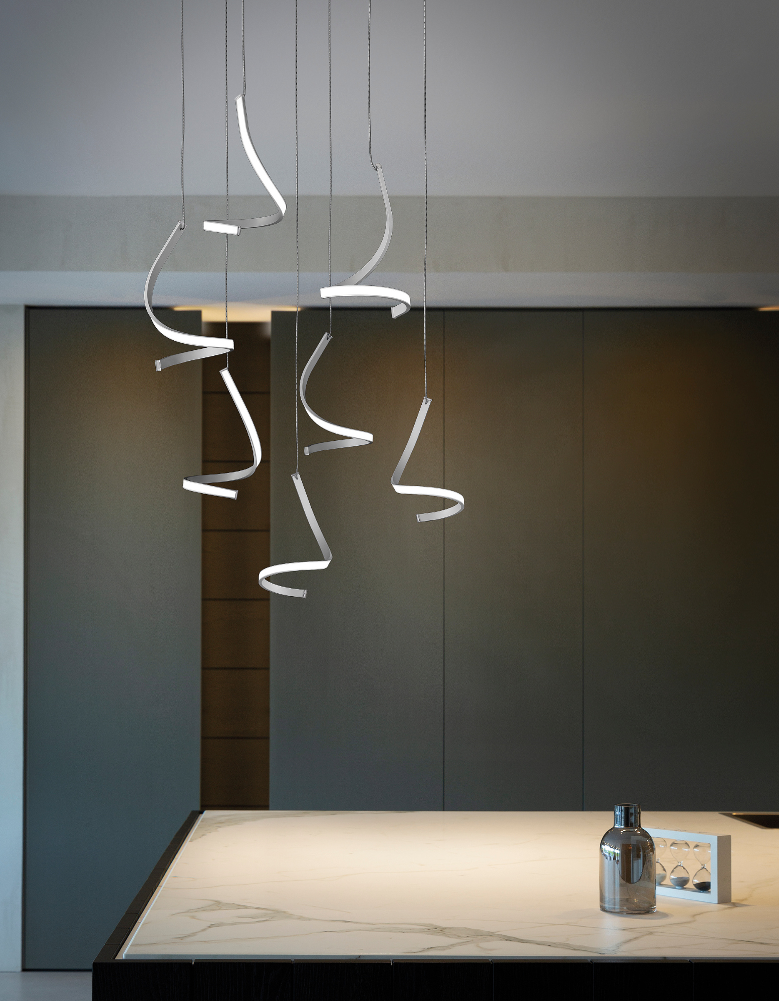 The curved light circle radiates its warm white LED light evenly and is harmoniously distributed in the room by the opal-coloured diffuser. Thanks to the latest LED technology, the Tape is extremely energy-efficient in operation. Thanks to the decentralised canopy, as well as the 2-metre cable length of the respective luminaire, you have the possibility to create very individual lighting situations. This gives you maximum design freedom. The twisted light bodies create a natural lightness and thus fit into any living space situation.