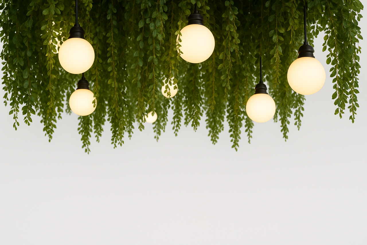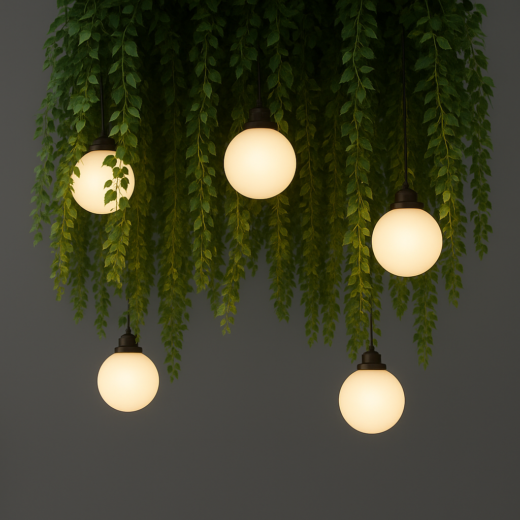 Hand-woven in a tiered silhouette, it features warm E26 illumination that filters softly through the rattan structure, enhanced by cascading greenery and floral accents for a rich, organic aesthetic.